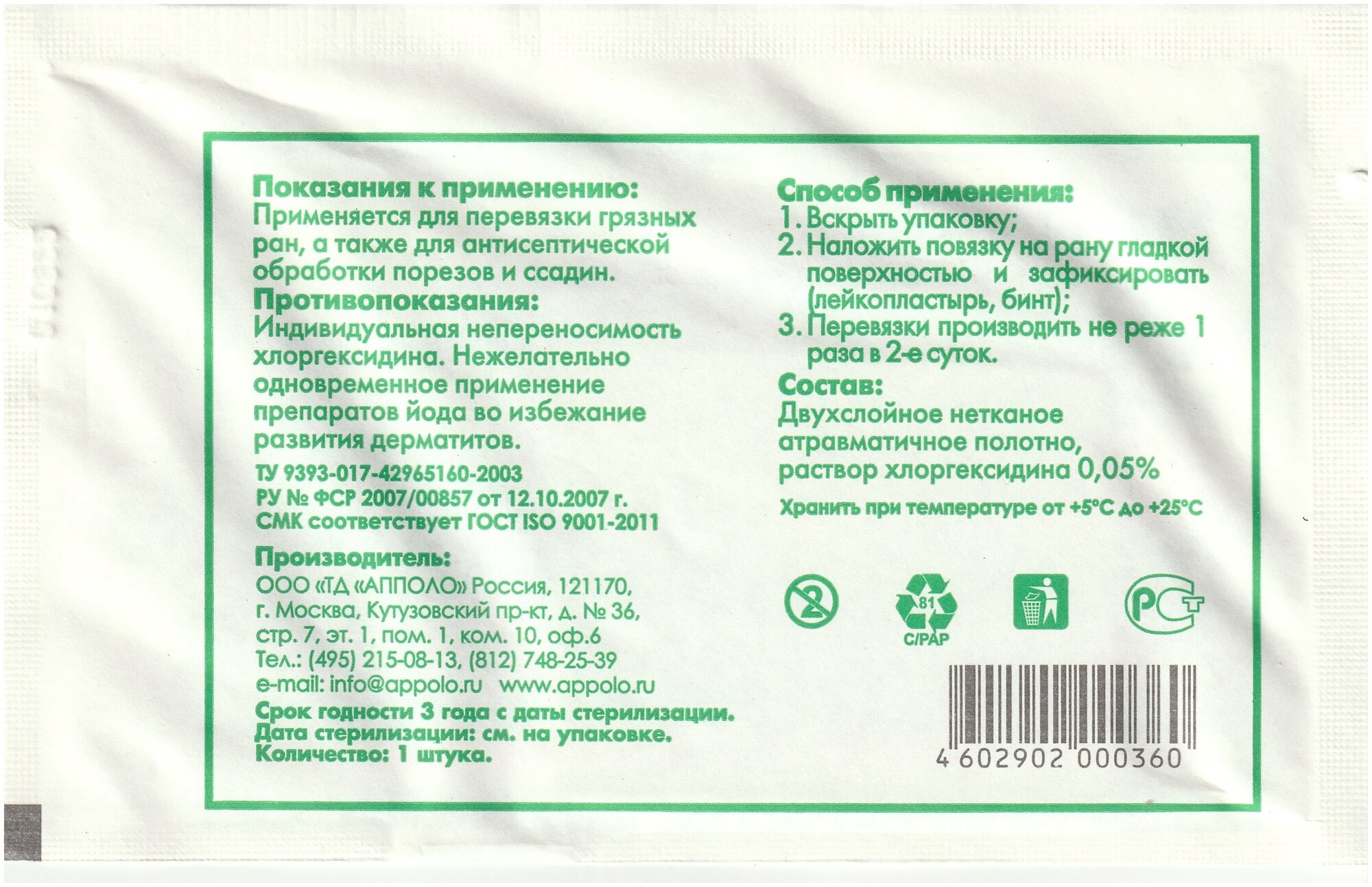 Купить Повязка антимикробная с хлоргексидином 6х10см пахг-апполо для перевязки грязных ран