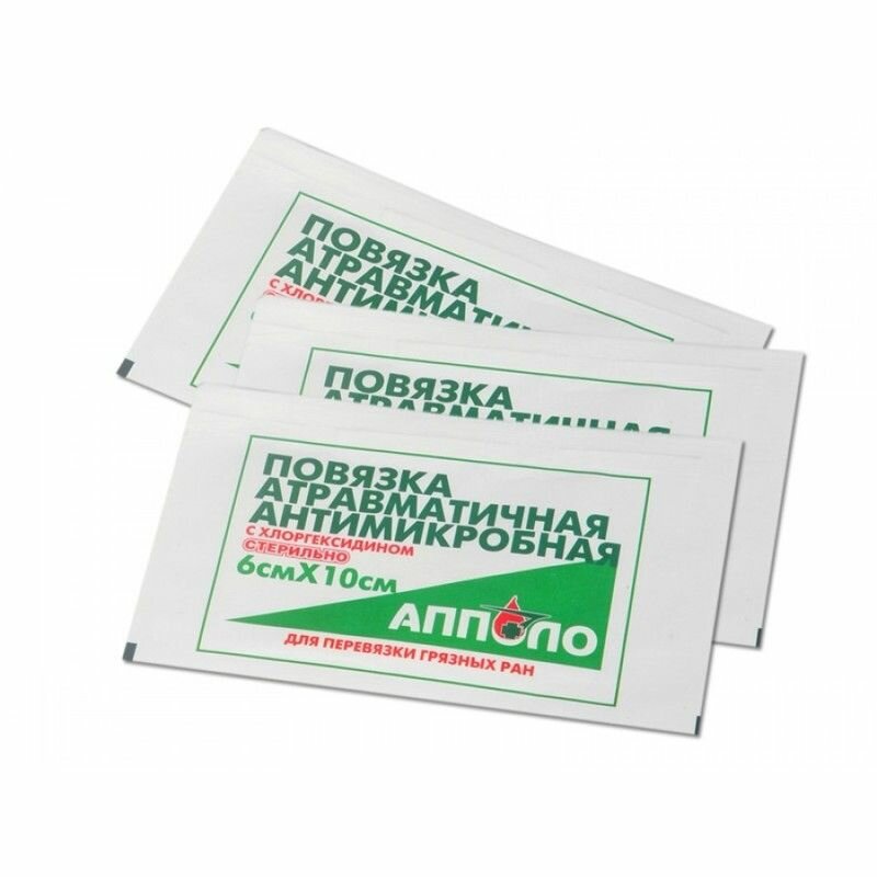Апполо Повязка антимикробная с хлоргексидином, 6 х 10 см. Комплект 3-ри штуки!