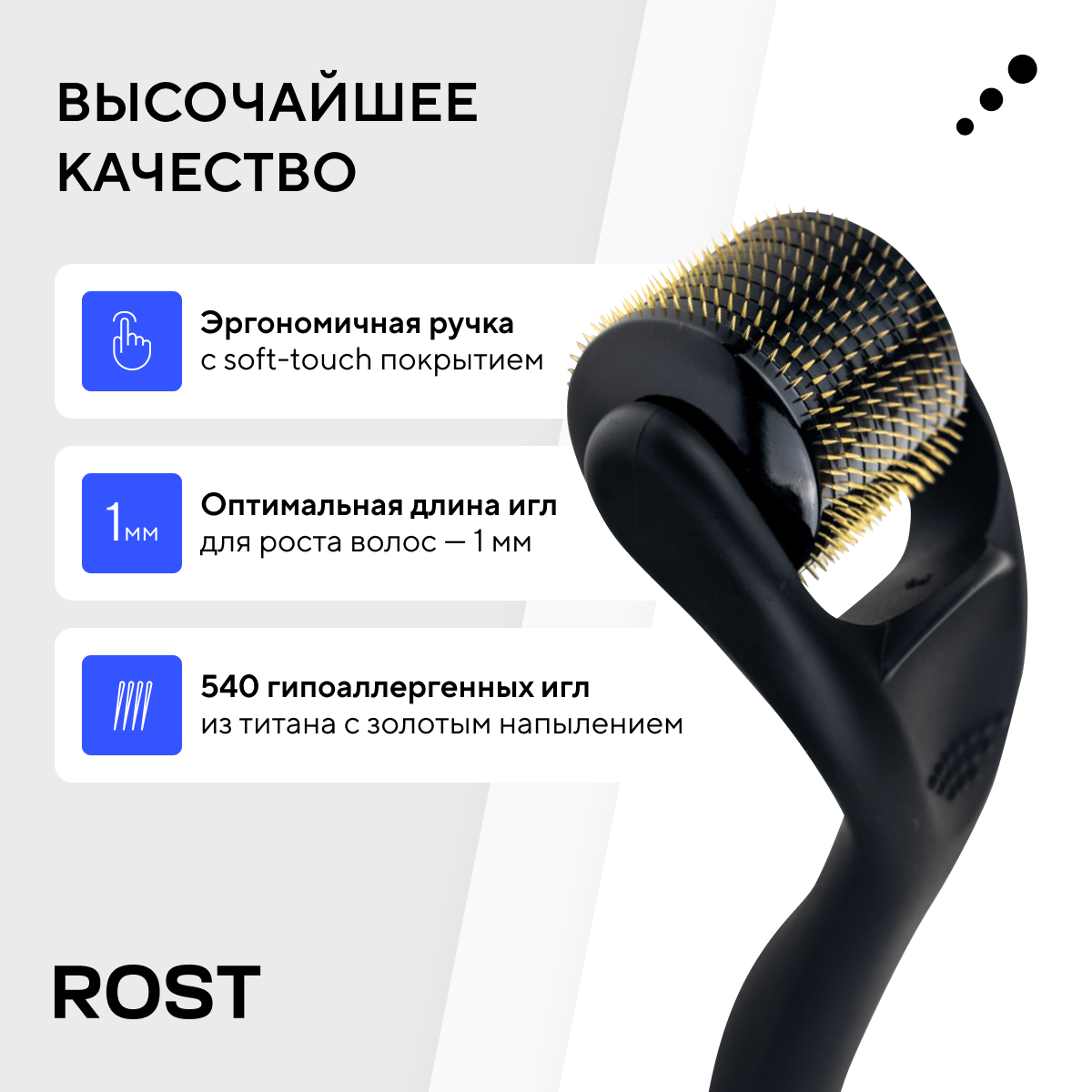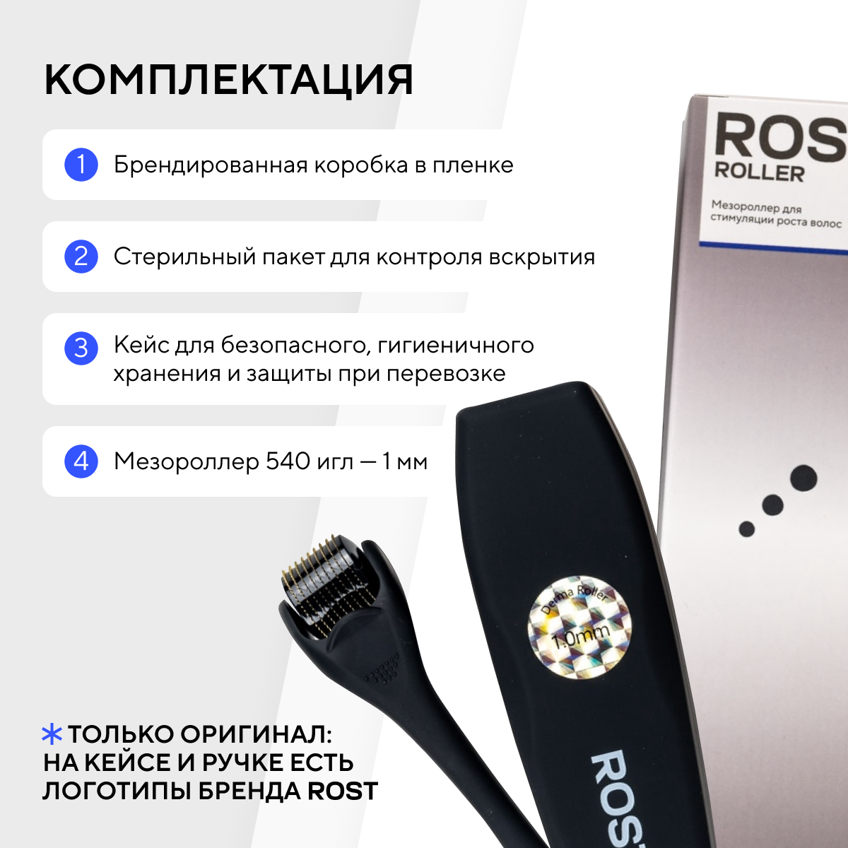 | Комплектация | Дермароллер ROST - 1шт; Защитный кейс - 1шт; Брендированная коробка - 1шт. |