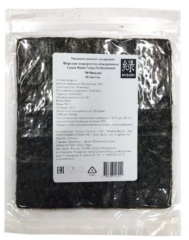 Морские водоросли Суши Нори Professional, MIDORI, 50 листов интересное: