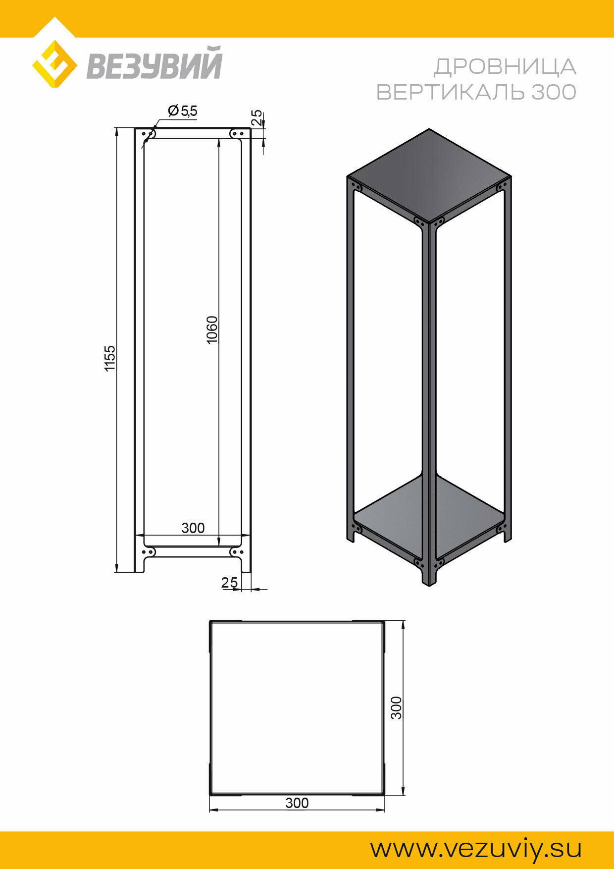 Дровница "Везувий вертикаль 300", разборная, черная, 115х30х30см, сталь, хай-тек интересное: