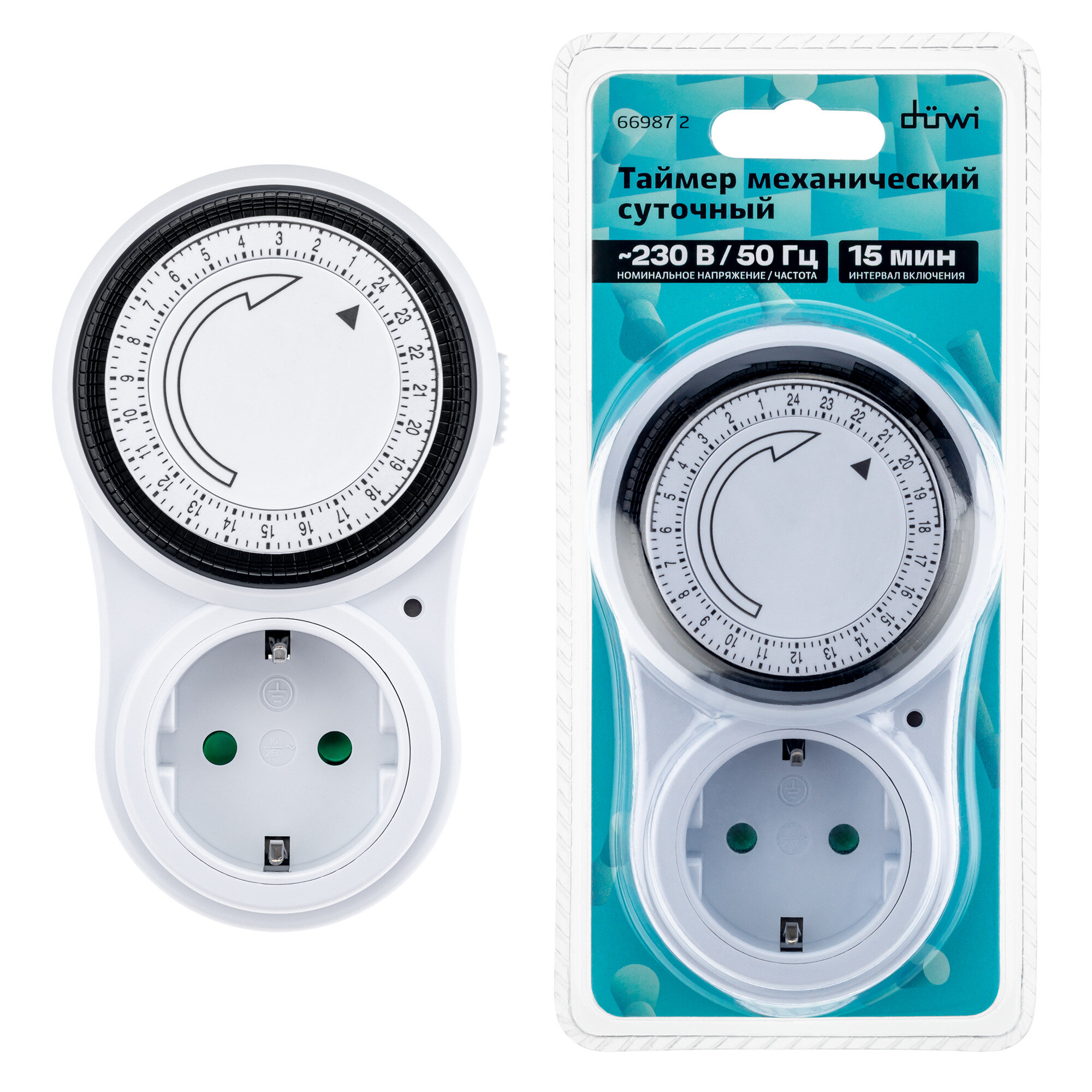 Таймер механический суточный 3680Вт Инт: 15мин 48 вкл/сутки белый duwi 66987 2 интересное: