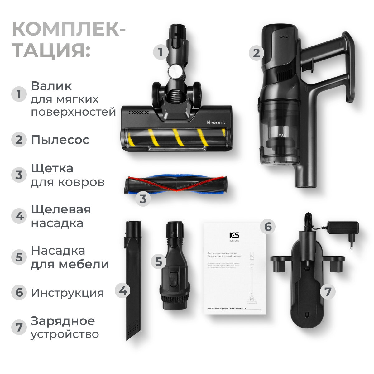 Пылесос Klesonic, беспроводной, вертикальный, BLDC-двигатель, 3 режима мощности интересное: