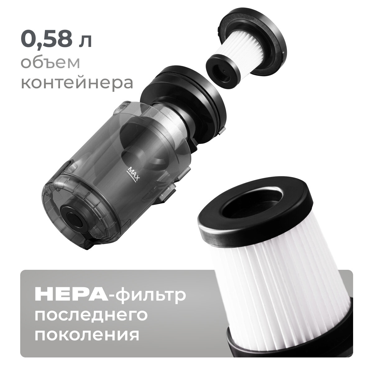 | Особенности конструкции | BLDC-мотор / индикатор заполнения пылесборника / место для хранения насадок / управление мощностью на рукоятке |