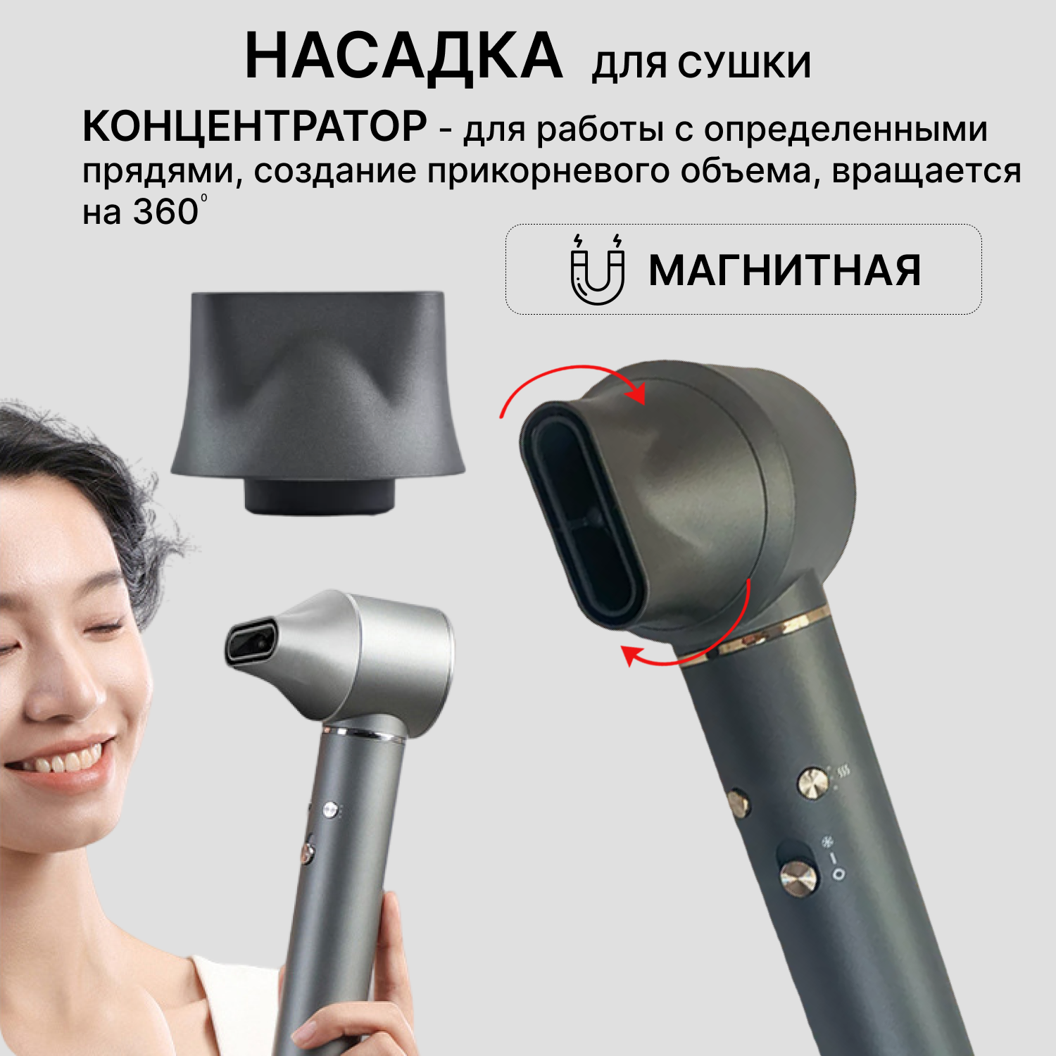 Купить Фен Gecht профессиональный с 5 насадками для укладки и завивки волос, стайлер 5 в 1, серый