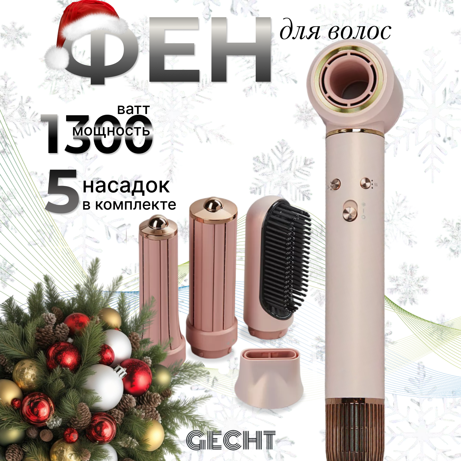 Фен стайлер Gecht для волос профессиональный с насадками 7в1