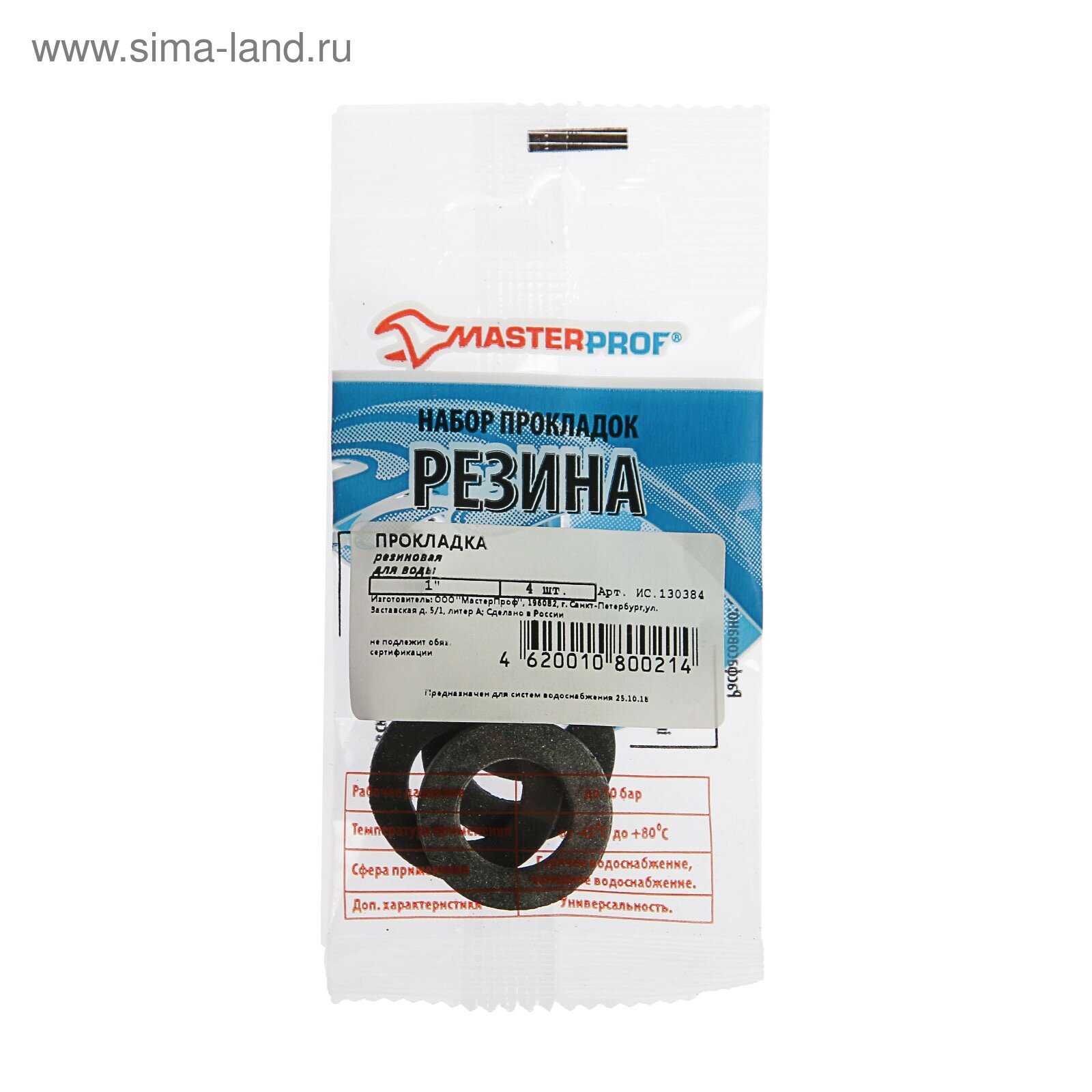 Купить Прокладка резиновая MASTERPROF для воды 1 4 шт