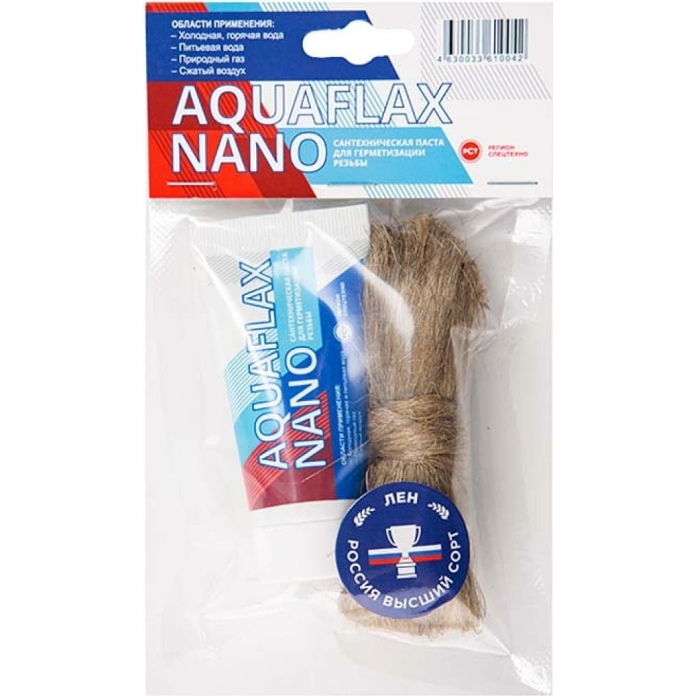 Набор AQUAFLAX NANO паста сантехническая уплотнительная герметик 30 г + лен, 15 г
