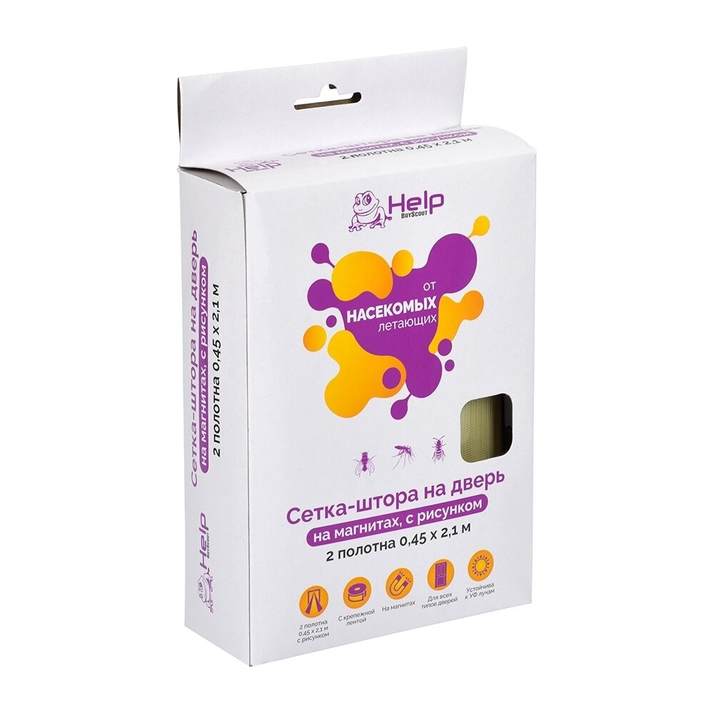 Сетка-штора HELP на дверь противомоскитная с рисунком, магнитами и крепежом, 45*210 см, 2шт