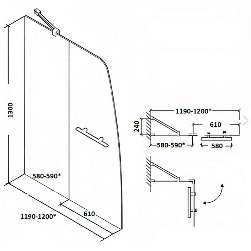 Шторка на ванну Parly 120x130 F03B профиль Черный стекло прозрачное интересное: