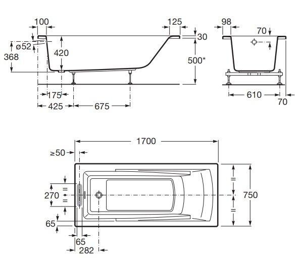 Монтажный комплект к ванне Roca "Hall" ZRU9302770, 170*75 см