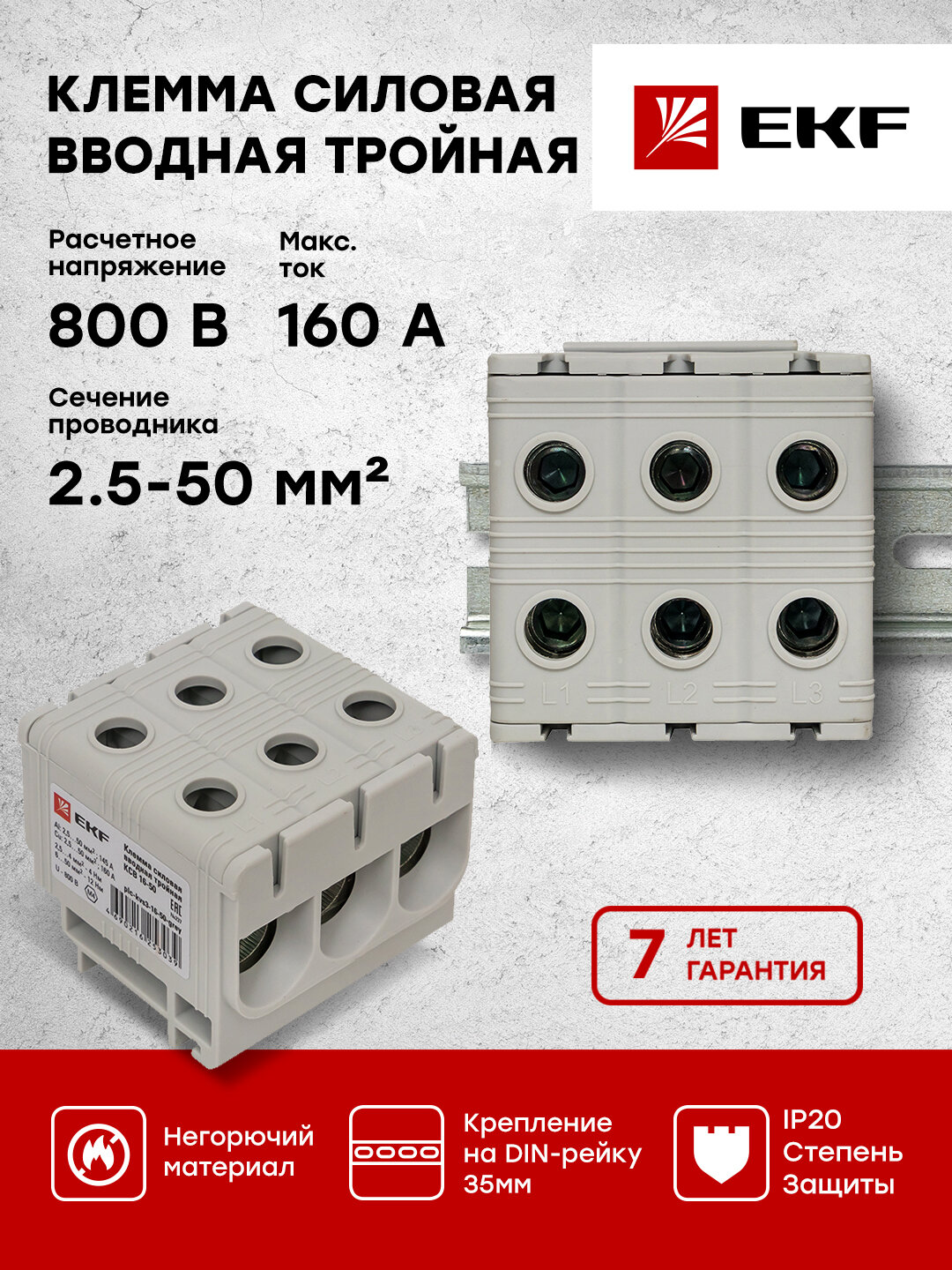 Купить EKF Клемма силовая вводная тройная КСВ 16-50 серая PROxima plc-kvs3-16-50-grey .