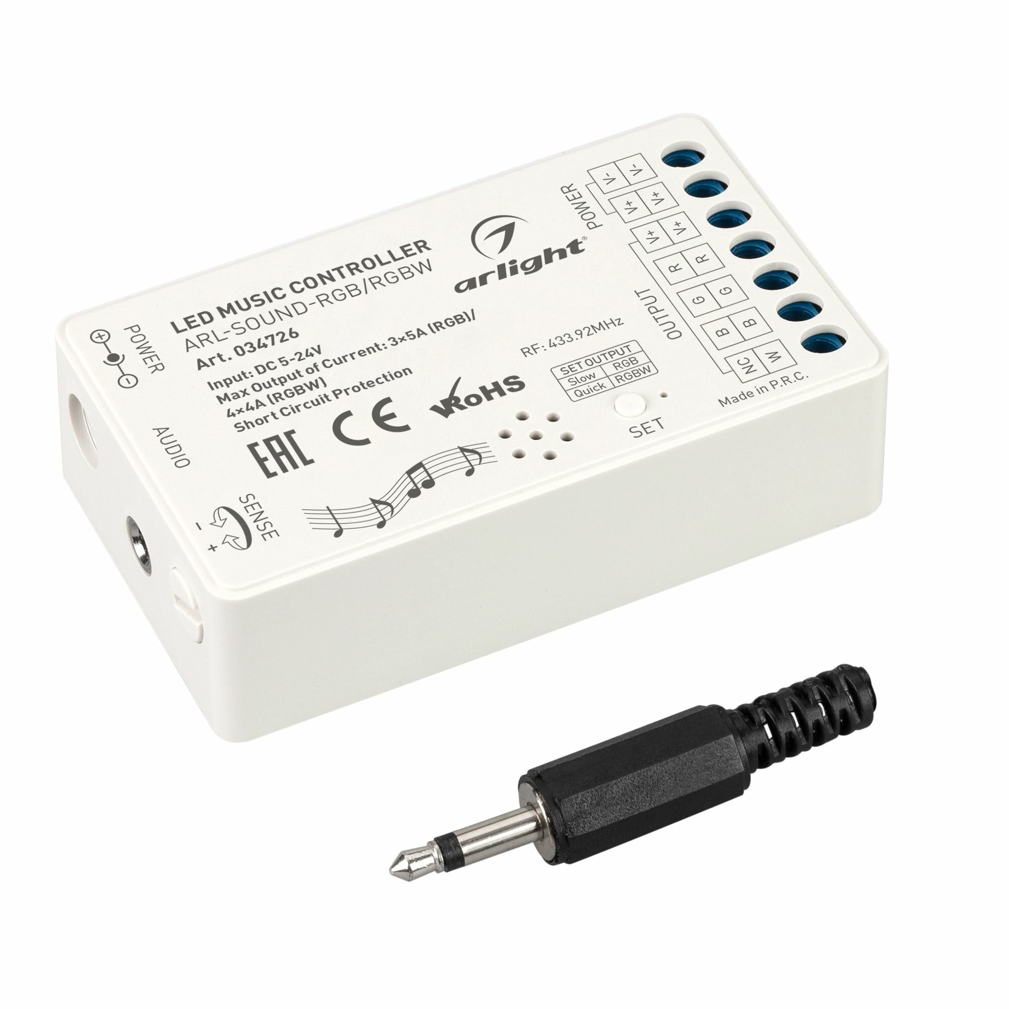 Купить 034726 Аудиоконтроллер ARL-SOUND-RGB/RGBW (12-24V, 4x4A, RF ПДУ 24кн) (Arlight, IP20 Пластик, 3 года)