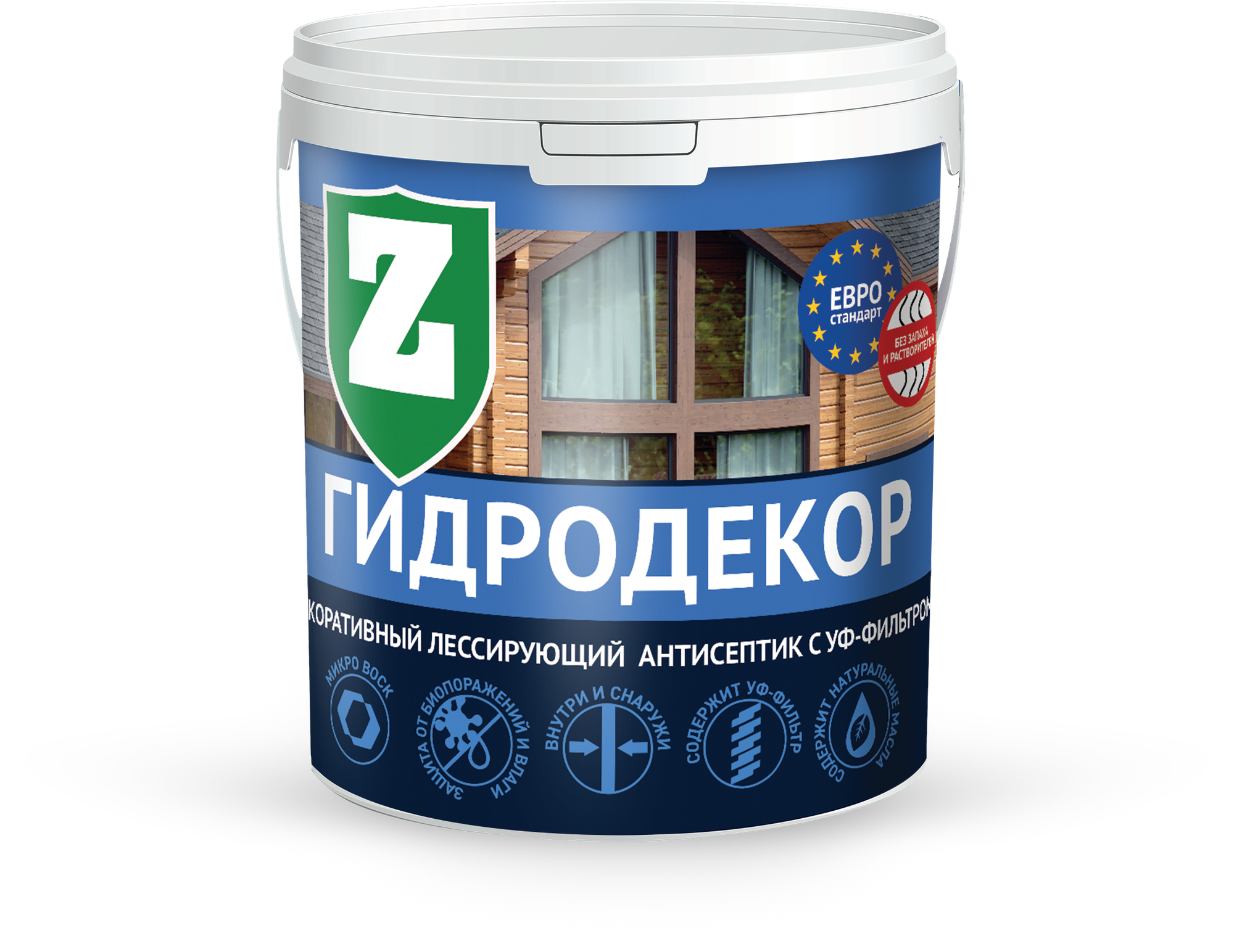 Водозащитная пропитка для дерева Зелест антисептик ГидроДекор Д-1, 9 кг, морозный иней