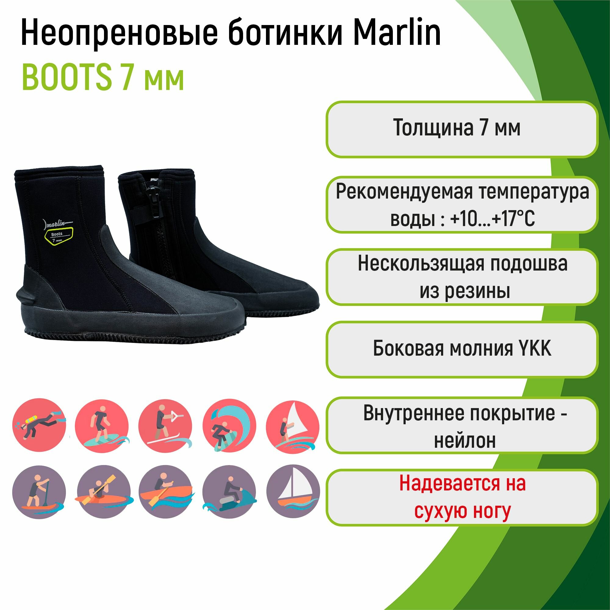 Боты неопреновые MARLIN BOOTS, черные, 7 мм, р-р XL