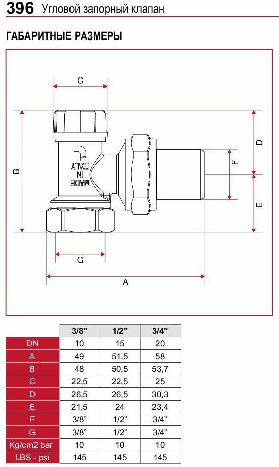 Вентиль отопительный нижний угловой ITAP 396, 3/4"