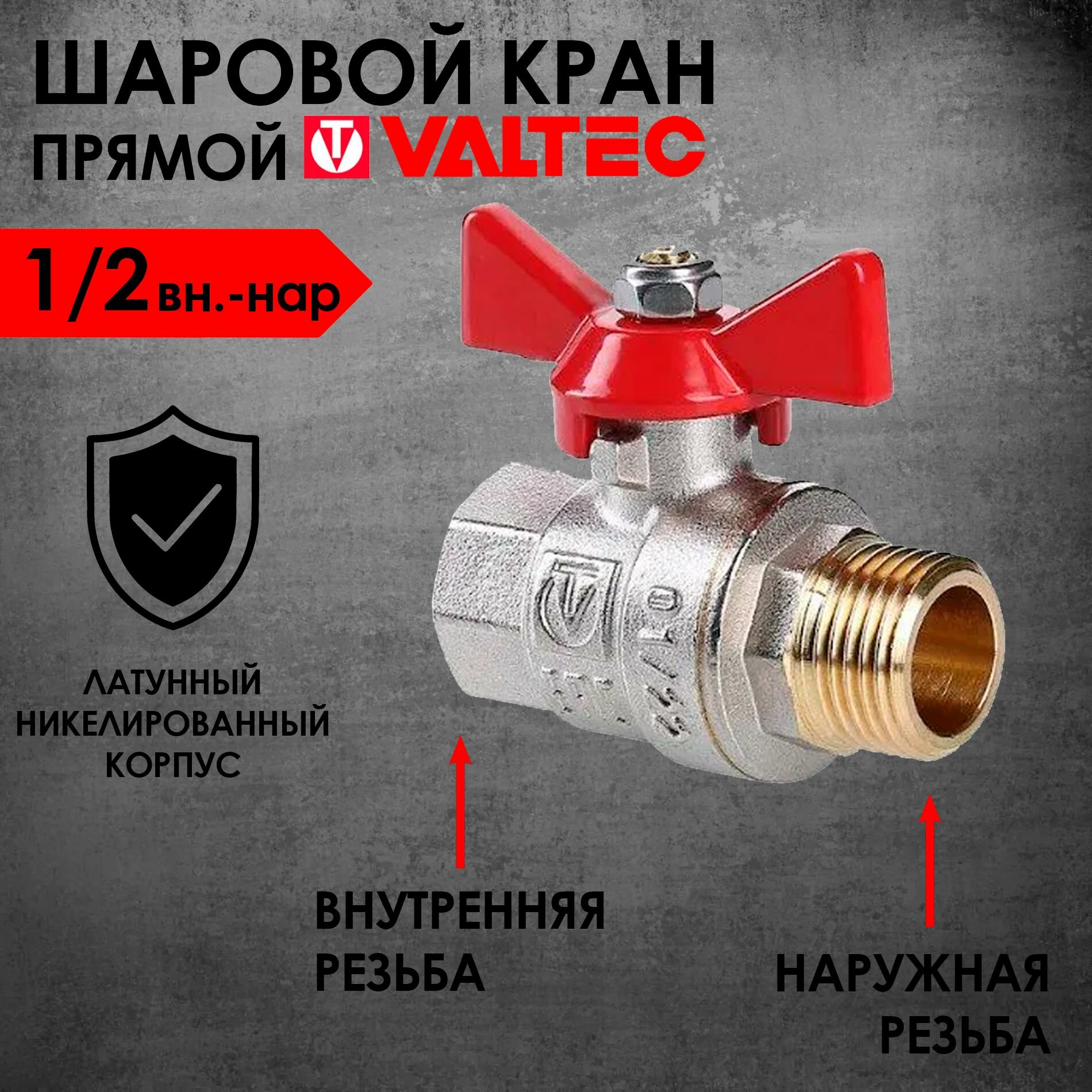 Кран шар. BASE, рукоятка бабочка 1/2" вн.-нар. Valtec VT.218. N.04