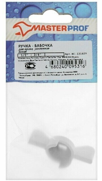 Купить Ручка-бабочка для крана, 1/2"-3/4", усиленная, белая, MasterProf, ИС.131429