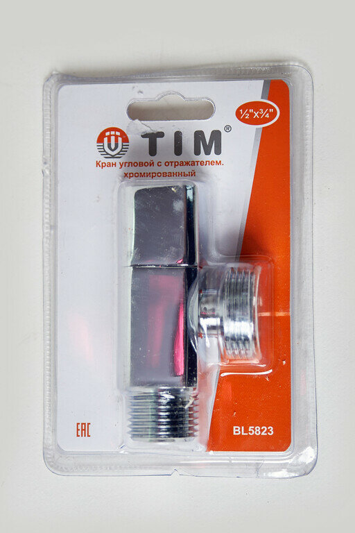 Купить Угловой кран TIM BL5823 1/2"-3/4" квадратный с отражателем хром