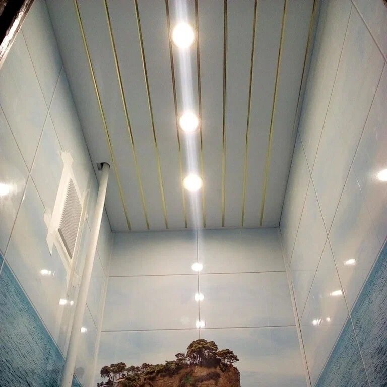 Потолок из ПВХ панелей в комплекте, 2x2.4 метра, белый глянец/золото интересное: