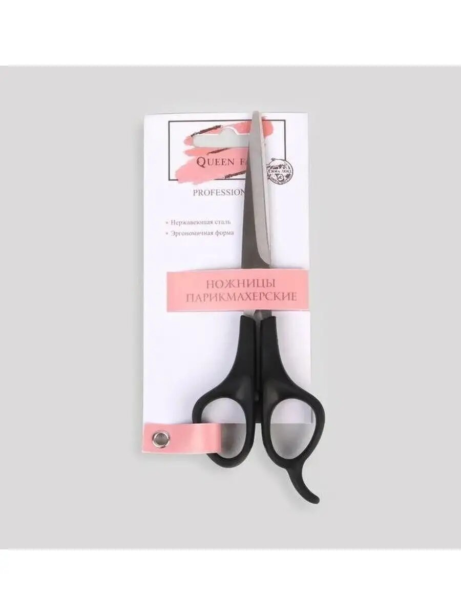 Ножницы парикмахерские с упором, лезвие — 6 см, цвет чёрный/серебристый, 5391049