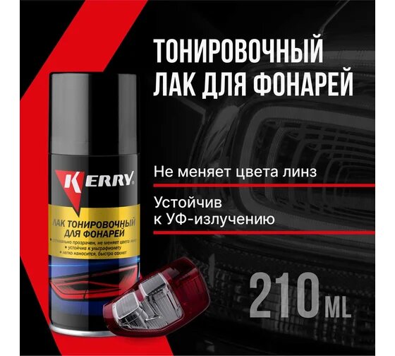Акриловый лак для тонировки фар KERRY 210 мл черный (аэрозольный лак, лак для фар в баллончике, тонировочный лак, лак для фар автомобиля) арт. KR-963.1 интересное: