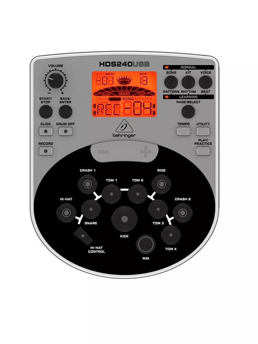 | Подробная комплектация | Звуковой модуль HDS240USB, Педаль бас барабана, Пэды и стойки: 1 х 8" двух зонный пэд малого барабана, 3 х 8" двух зонных пэда томов, 3 х 12" пэда тарелок, хай-хэт триггер педаль, Рама с установленными стойками, Кабель, Барабанные палочки |