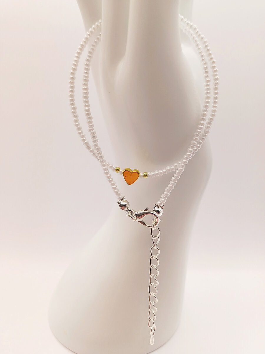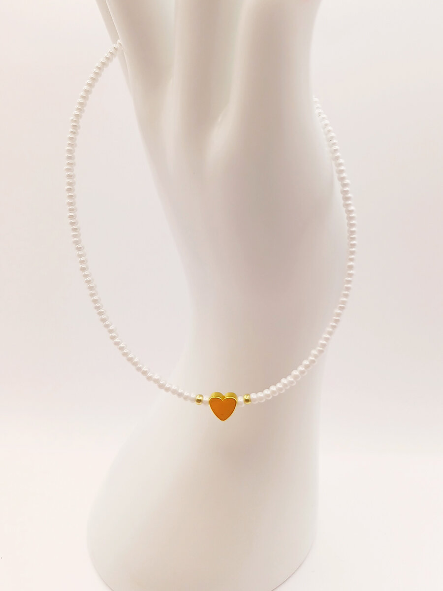 Чокер из белого жемчужного бисера с сердечком из перламутра