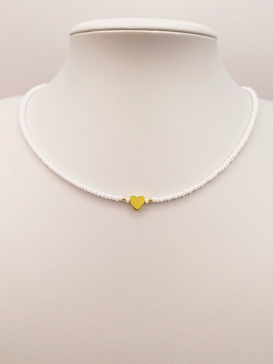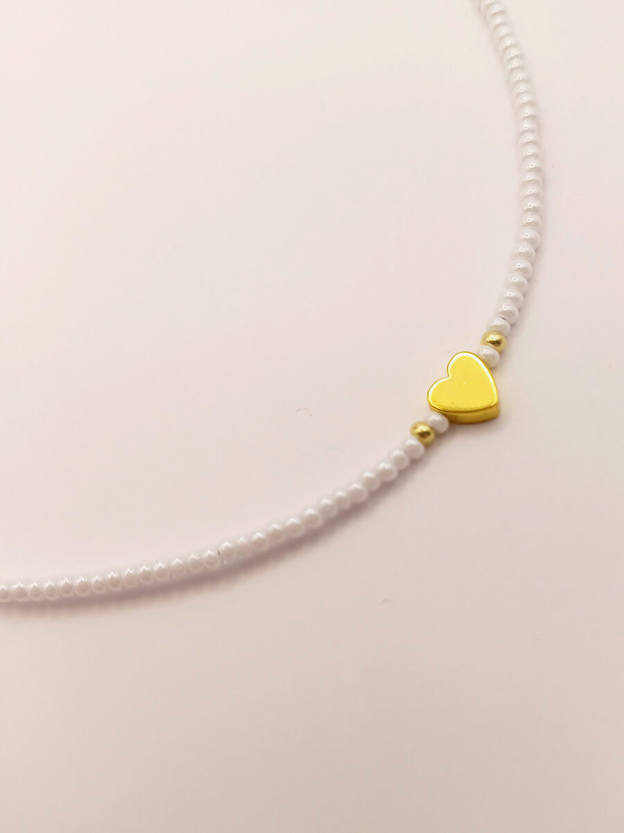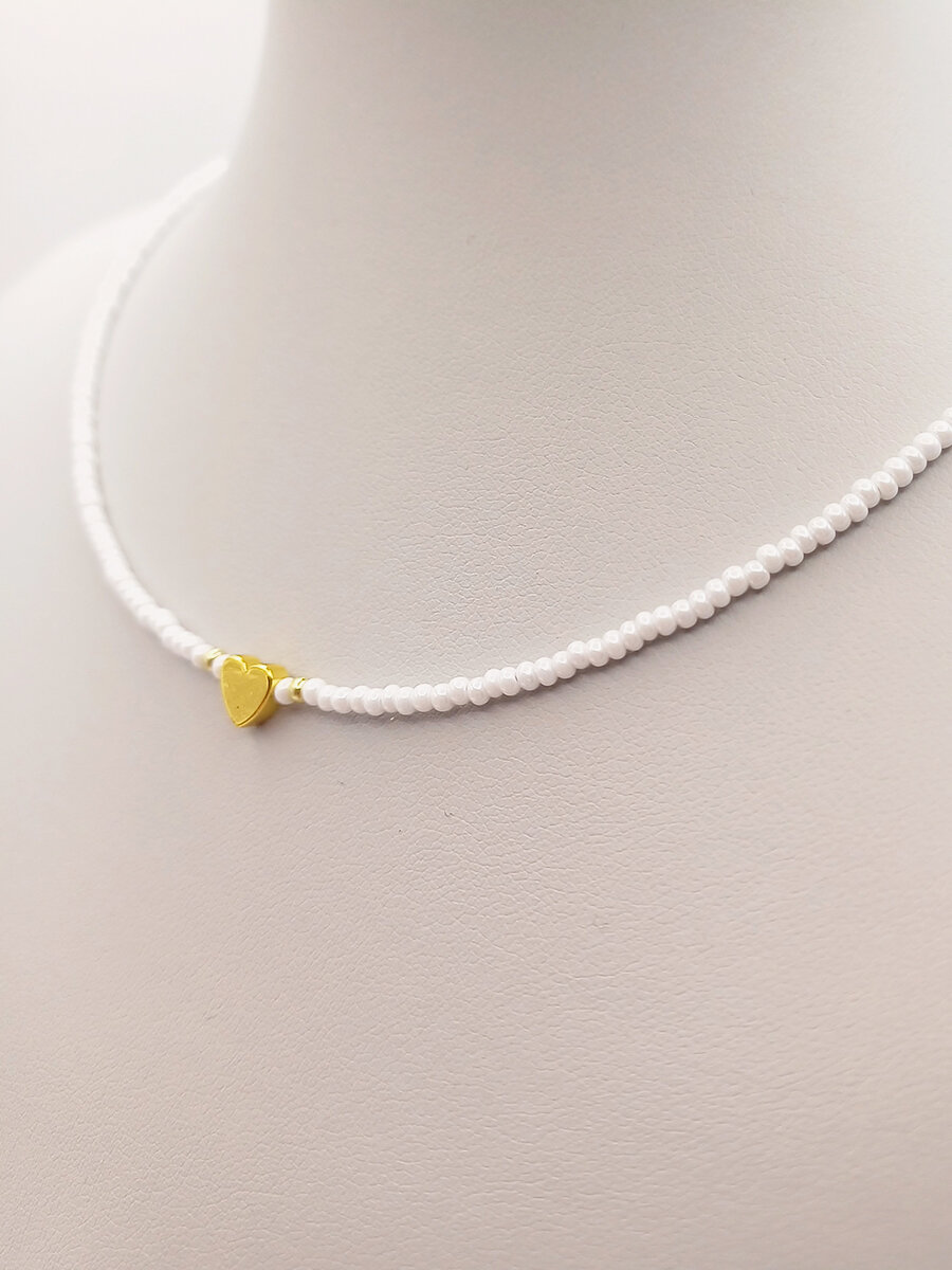 Купить Чокер из жемчужного бисера с золотым сердечком