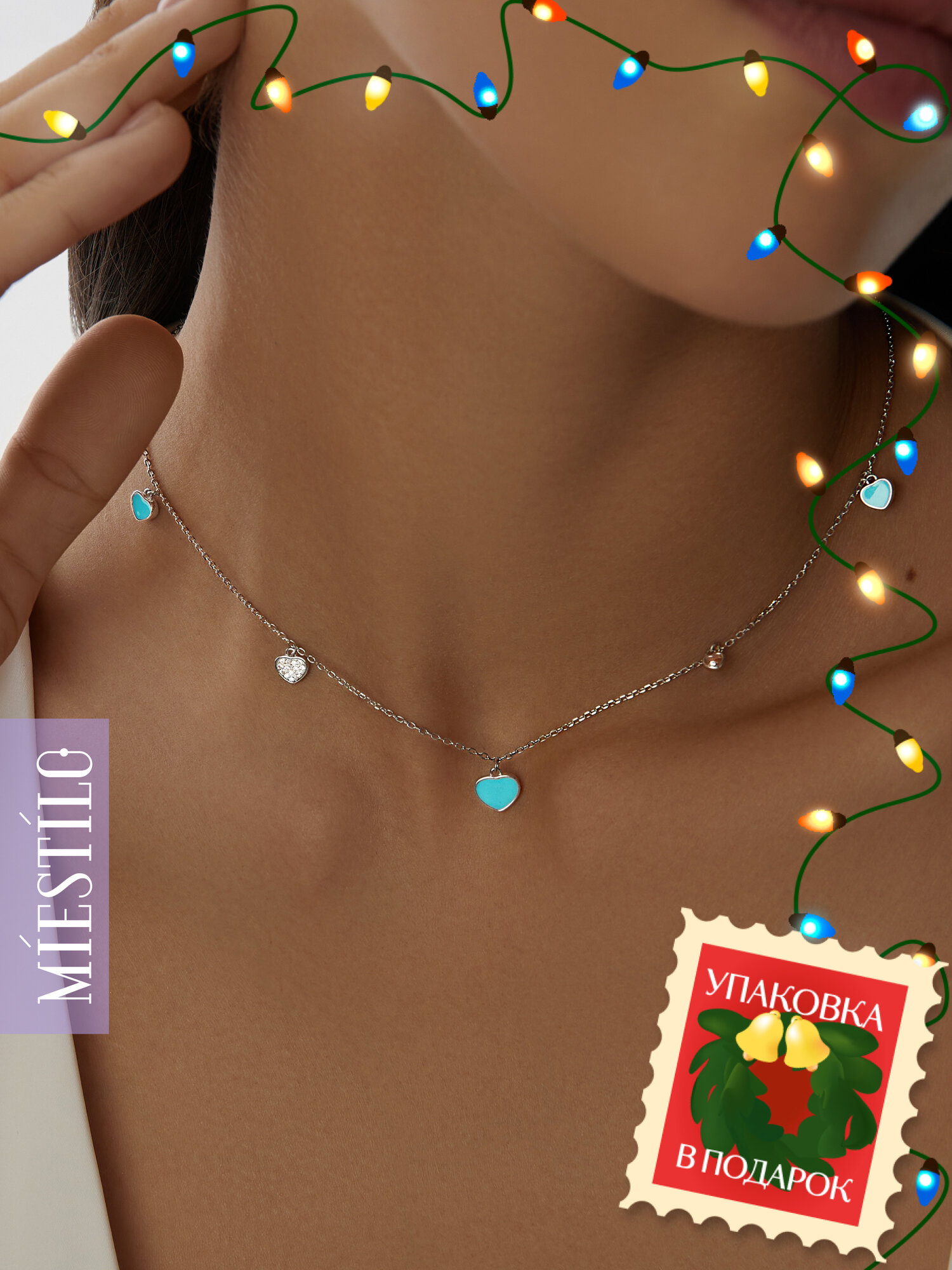 Колье MIESTILO на шею серебро 925 сердце эмаль интересное: