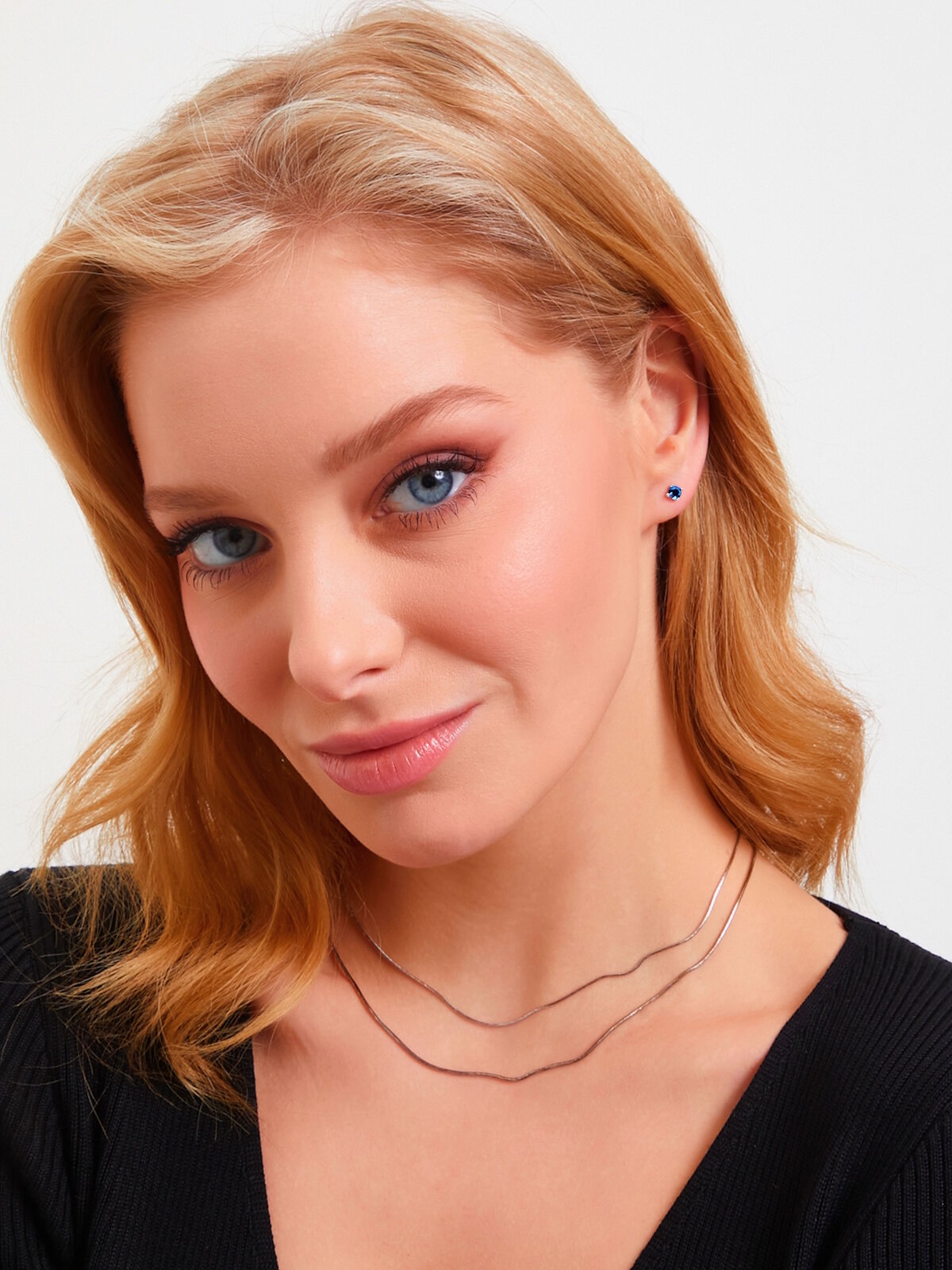 Серьги пусеты ПЕРСОНА, серебро, 925 проба, родирование, кристаллы Swarovski, размер 4 мм, длина 1.3 см, , синий
