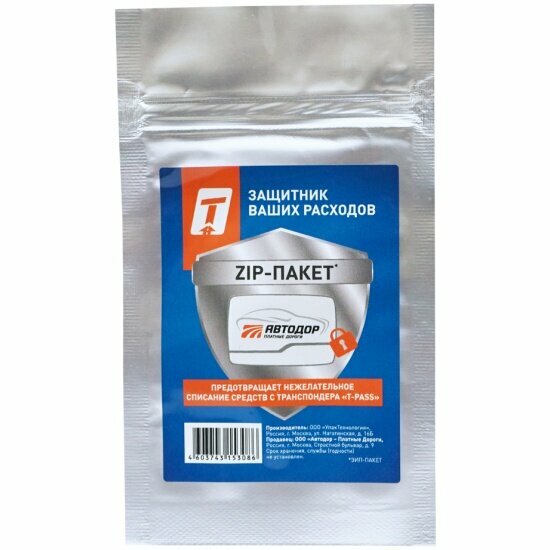 Купить ZIP-пакет для хранения транспондера T-Pass Автодор-Платные Дороги