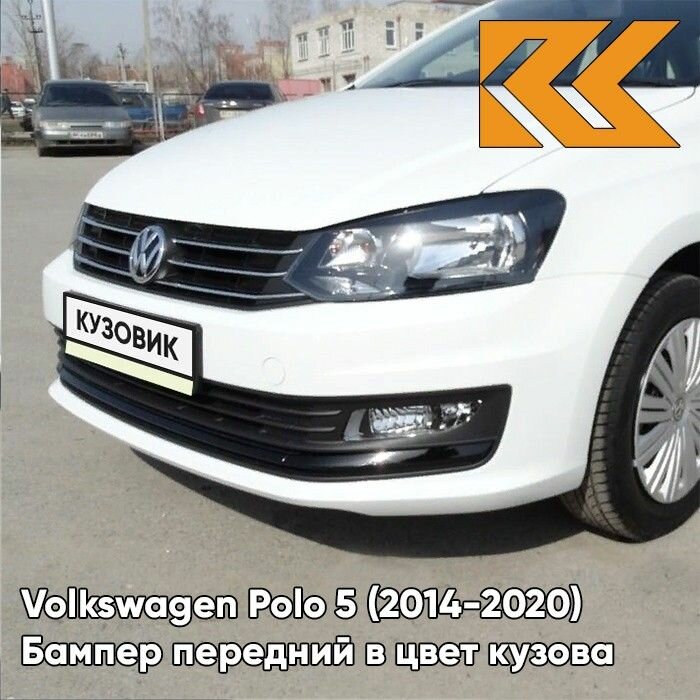 Купить Бампер передний в цвет кузова для Фольксваген Поло 5 Volkswagen Polo 5 (2014-2020) седан рестайлинг 0Q - LC9A, PURE WHITE - Белый