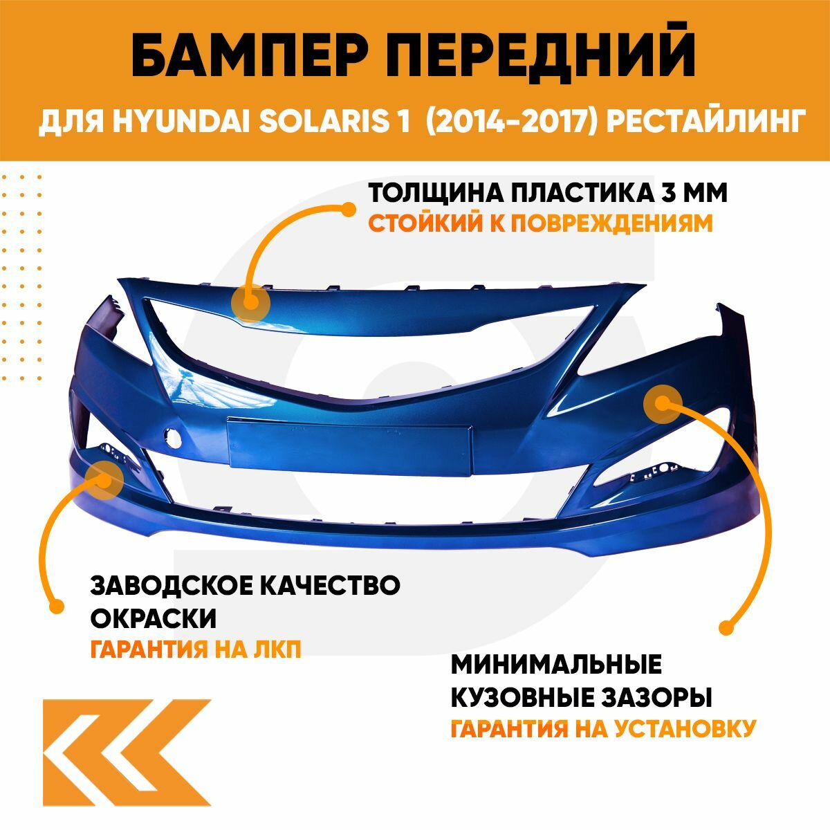 Купить Бампер передний в цвет кузова для Хендай Солярис 1 Hyundai Solaris 1 (2014-2017) рестайлинг ZD6 -Dazzling Blue- Синий