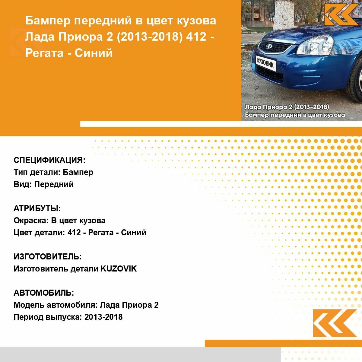 Ниже Вы можете прочитать отзывы на Бампер передний в цвет кузова для Лада Приора 2 (2013-2018) 412 - Регата - Синий, ознакомится с подробными характеристиками, посмотреть интересные обзоры и фотографии на Бампер передний в цвет кузова для Лада Приора 2 (2013-2018) 412 - Регата - Синий.