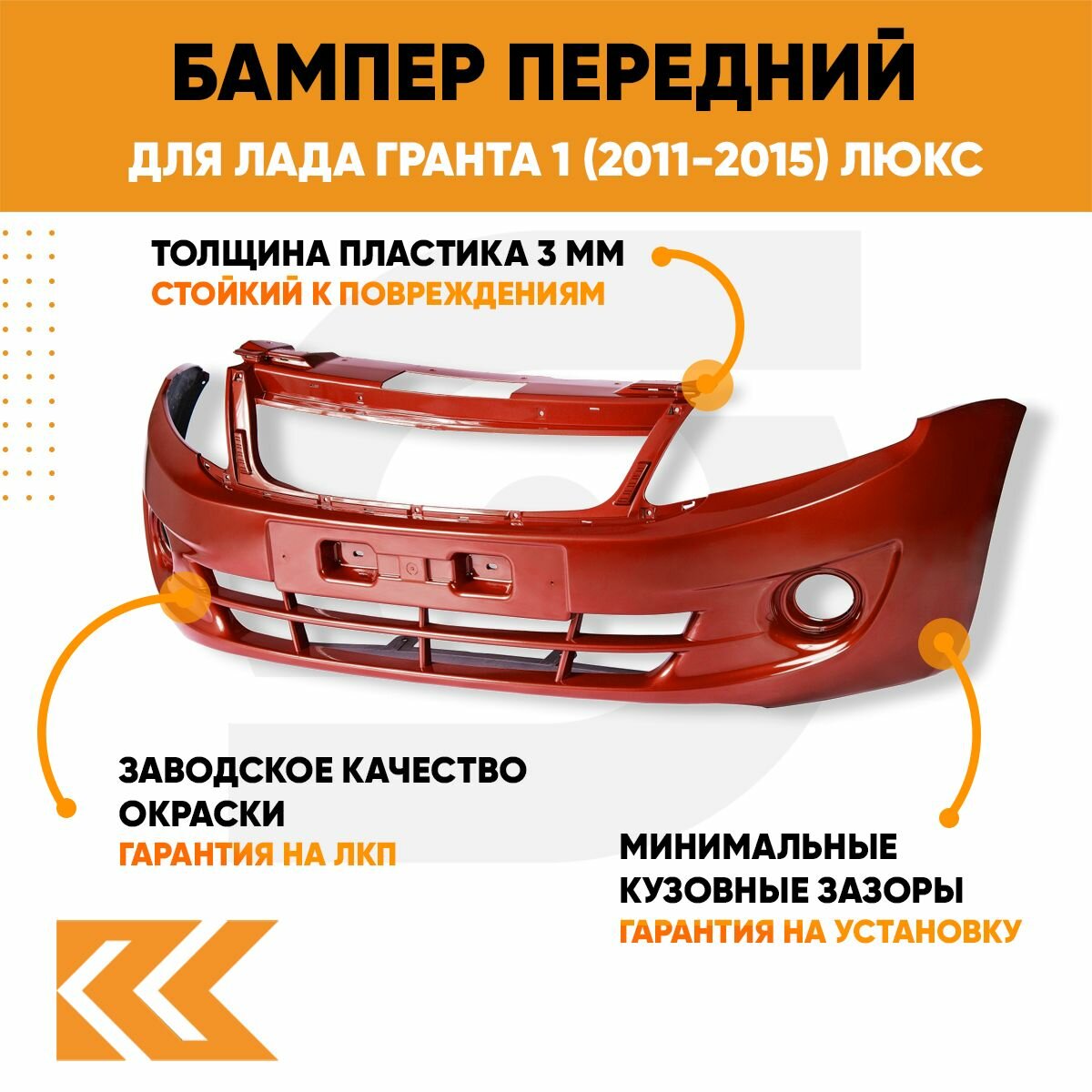 СохранитьБампер передний в цвет кузова для Лада Гранта 1 2190 (2011-2015) люкс 193 - пламя - Красно-оранжевый интересное: