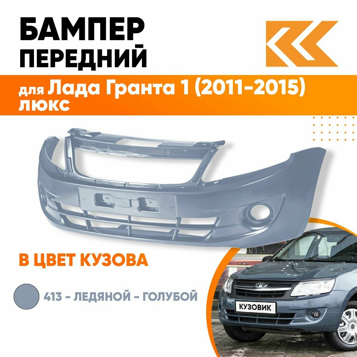 Бампер передний в цвет Лада Гранта 1 (2011-2015) люкс 413 - ледяной - Голубой