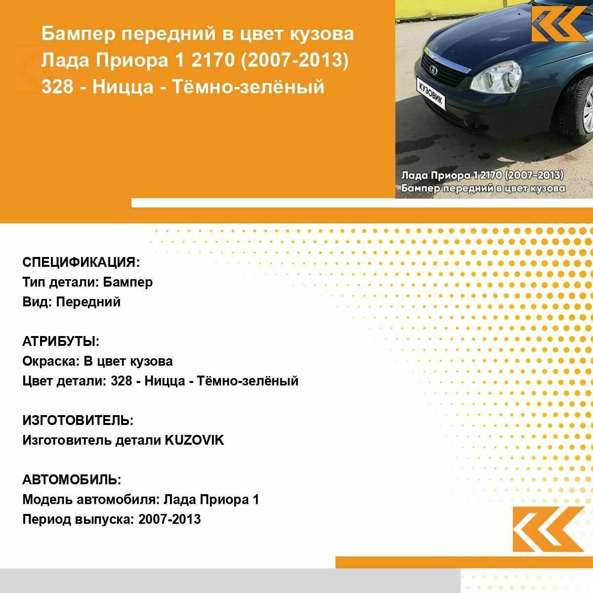 Ниже Вы можете прочитать отзывы на Бампер передний в цвет кузова для Лада Приора 1 2170 (2007-2013) 328 - Ницца - Темно-Зеленый, ознакомится с подробными характеристиками, посмотреть интересные обзоры и фотографии на Бампер передний в цвет кузова для Лада Приора 1 2170 (2007-2013) 328 - Ницца - Темно-Зеленый.