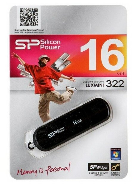 Флешка Silicon Power LuxMini 322 16 ГБ, 1 шт., черный