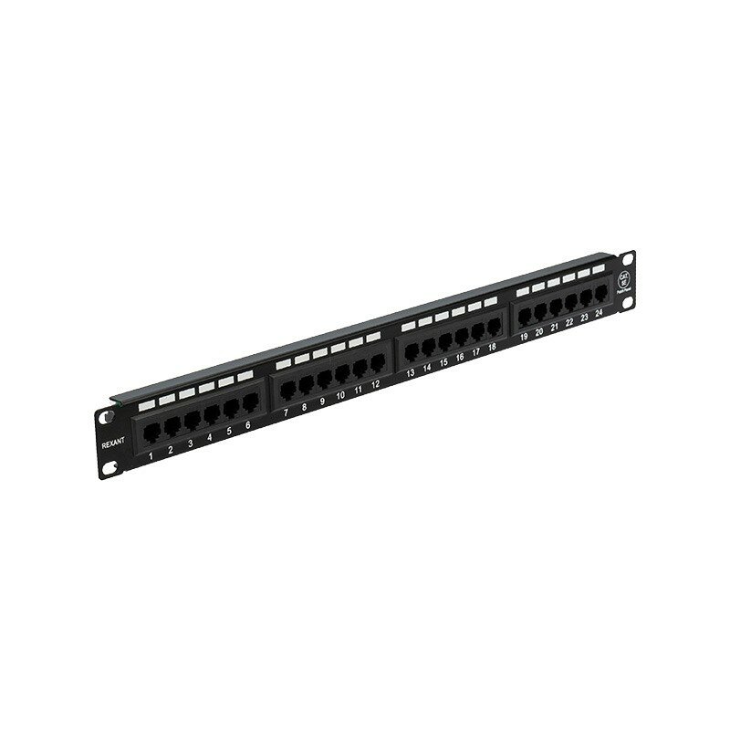 Патч-панель Rexant / коммутационная панель для патч кордов 19", 1U, 24 порта RJ-45, категория 5e, UTP неэкранированная, черная интересное: