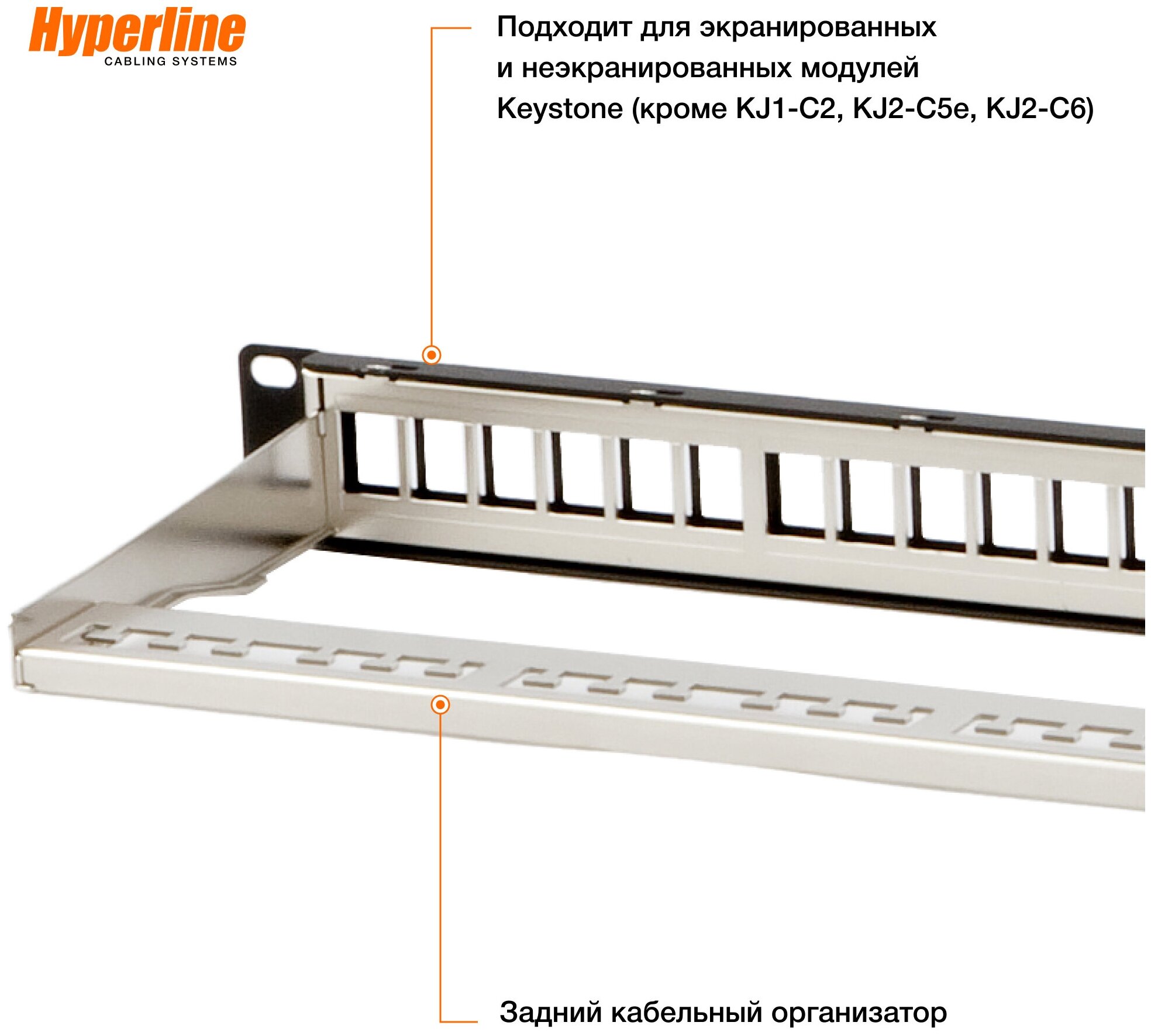 Купить Панель Hyperline PPBL3-19-24-SH-RM Модульная патч-панель 19", 24 порта, Flat Type, 1U, для экр