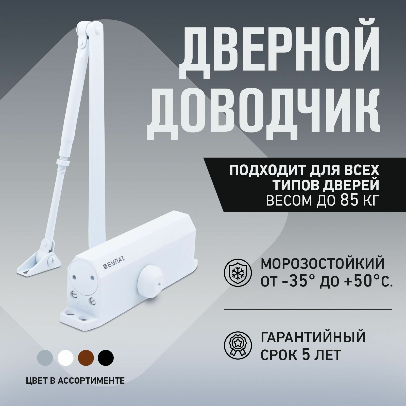 СохранитьДоводчик дверной морозостойкий сертифицированный Булат ДД 504/4 A-W (для дверей весом 60-85 кг) белый интересное: