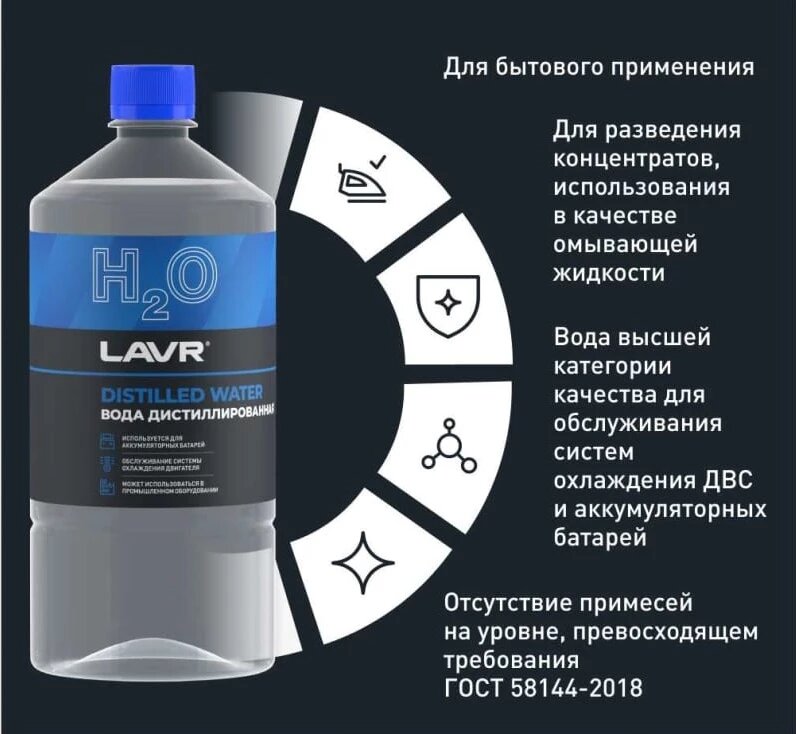 | Дополнительная информация | Вода дистиллированная LAVR 10 л - 1 шт. |