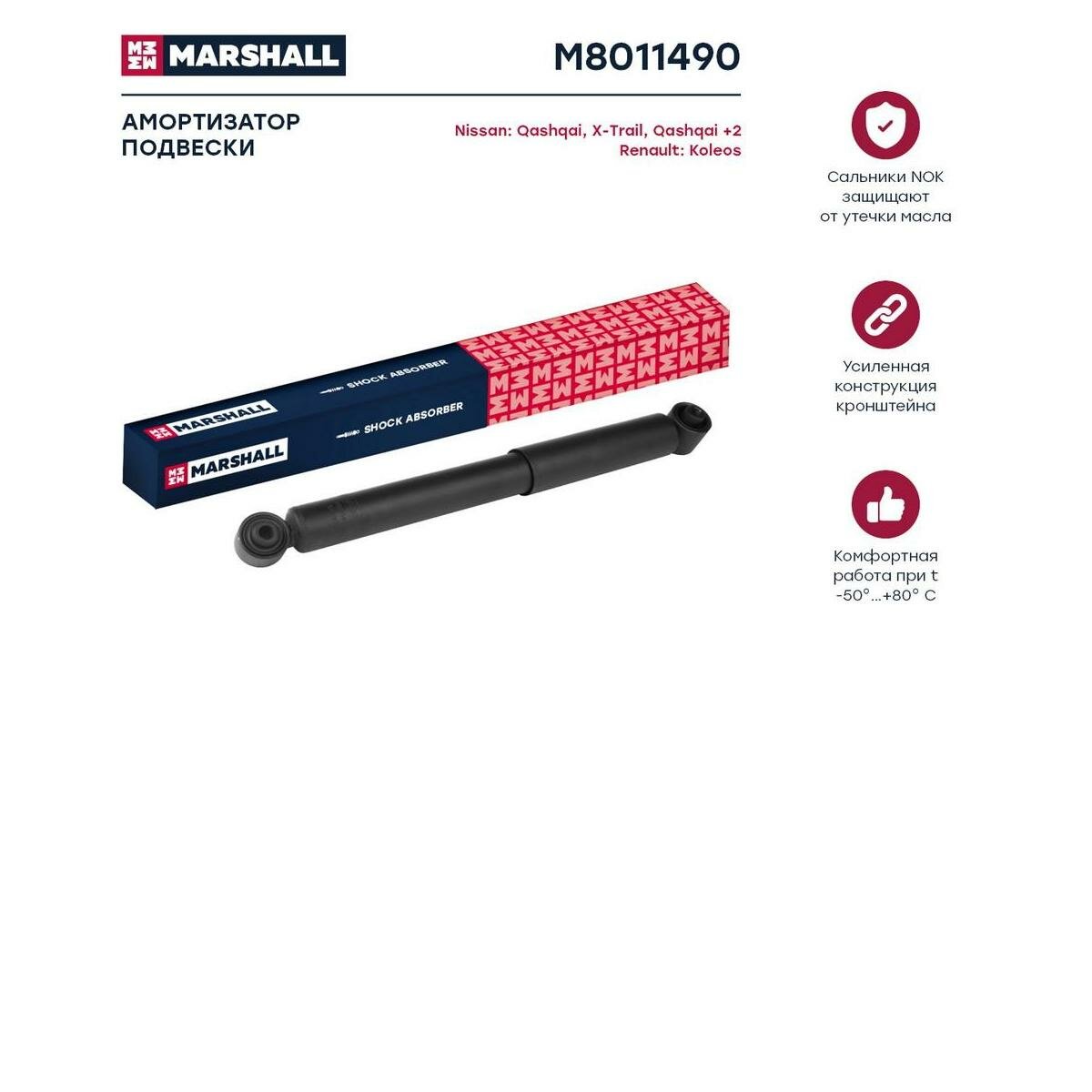 Амортизатор газовый задний MARSHALL M8011490 для Nissan Qashqai II-, Nissan Qashqai +2, Nissan X-Trail, Renault Koleos // кросс-номер KYB 349078