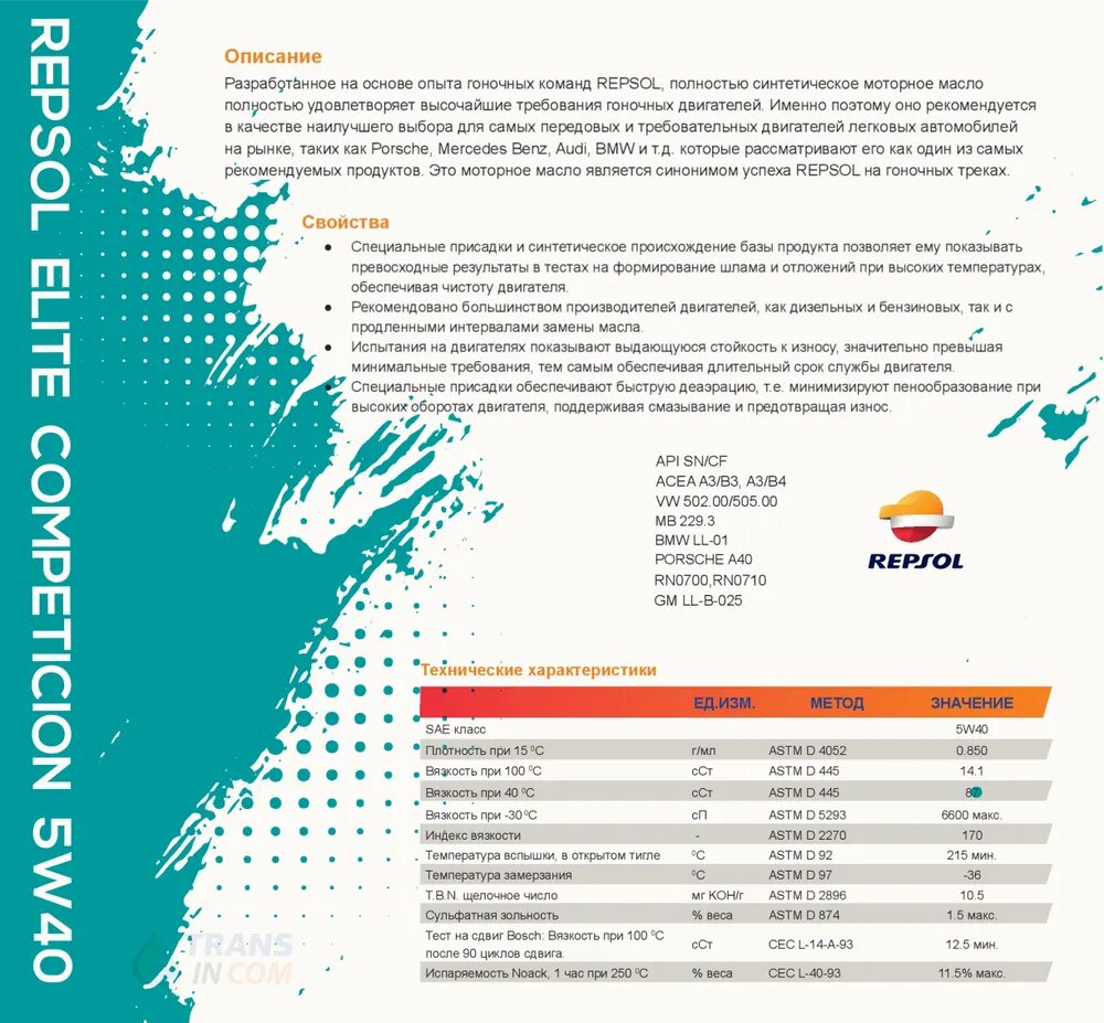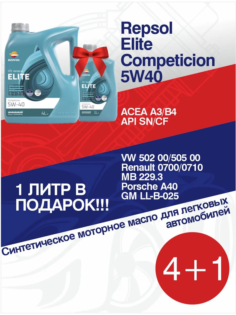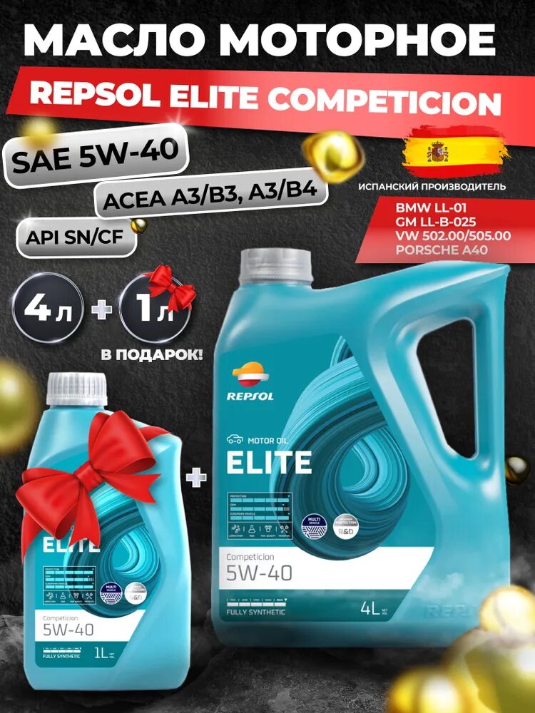 Моторное масло синтетическое Repsol Elite Competition 5W40, АКЦИЯ 4+1 литр в подарок интересное: