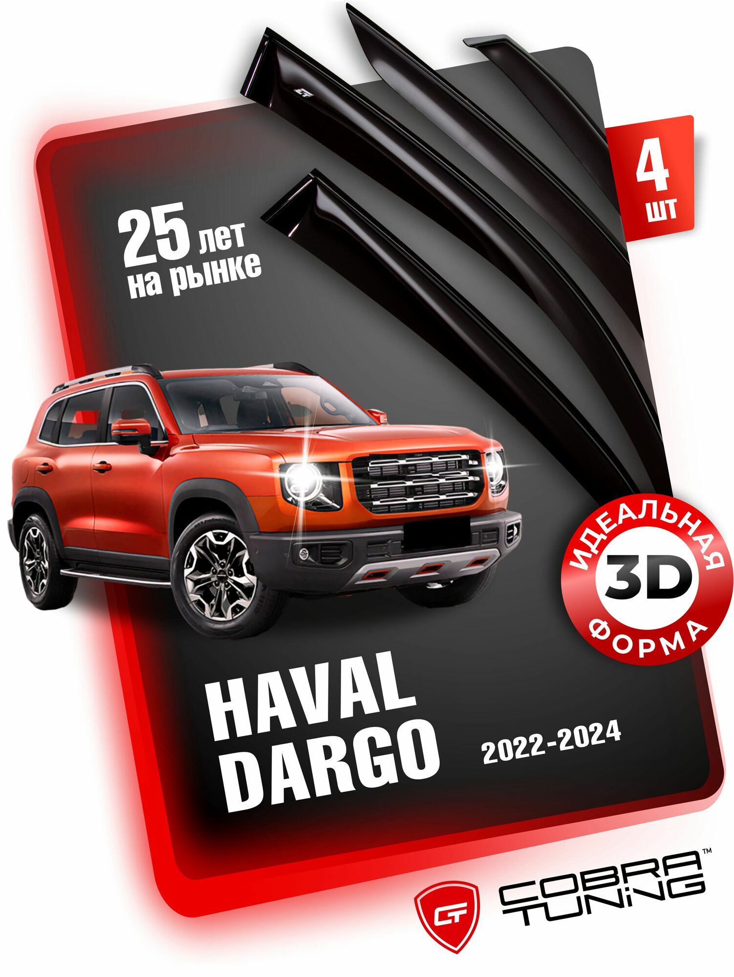 Купить Дефлекторы боковых окон для Haval Dargo (Хавал Дарго) 2022-2024 ветровики на двери автомобиля, Cobra Tuning