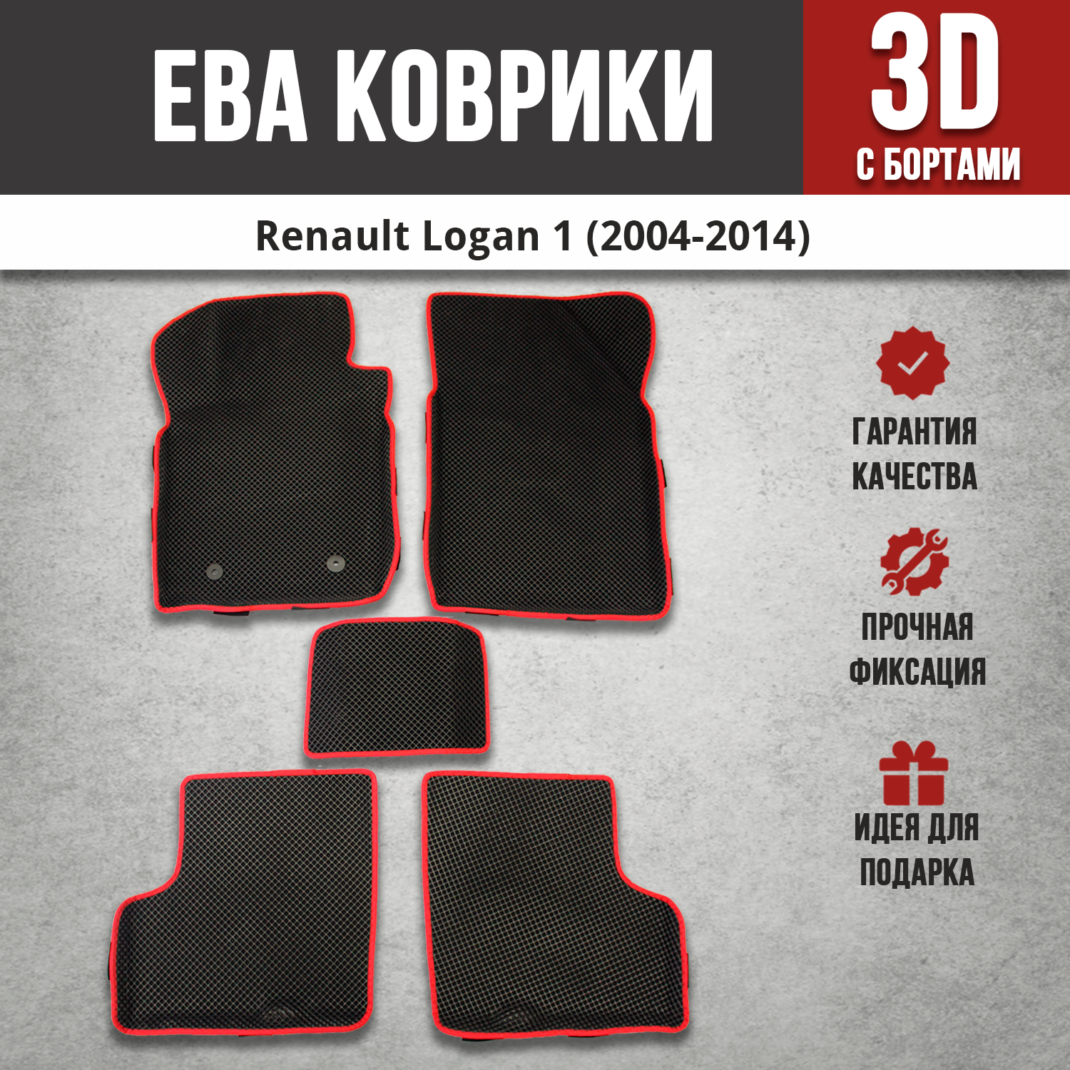 Купить EVA (ЭВА, ЕВА) коврики автомобильные с бортами в салон автомобиля Рено Логан 1 / Renault Logan 1 (2004-2014) черные / красный кант