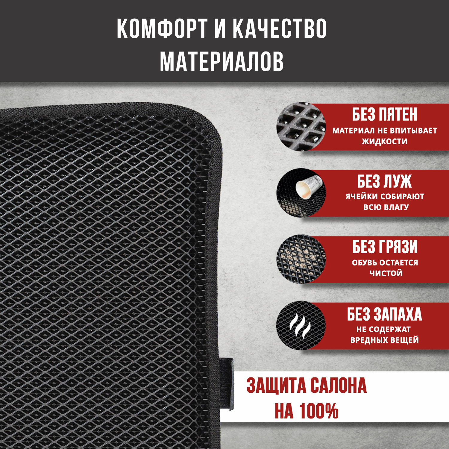 | Особенности | 3D-коврик / морозостойкий / на клипсах / с бортиками / с перемычкой / универсальное крепление |