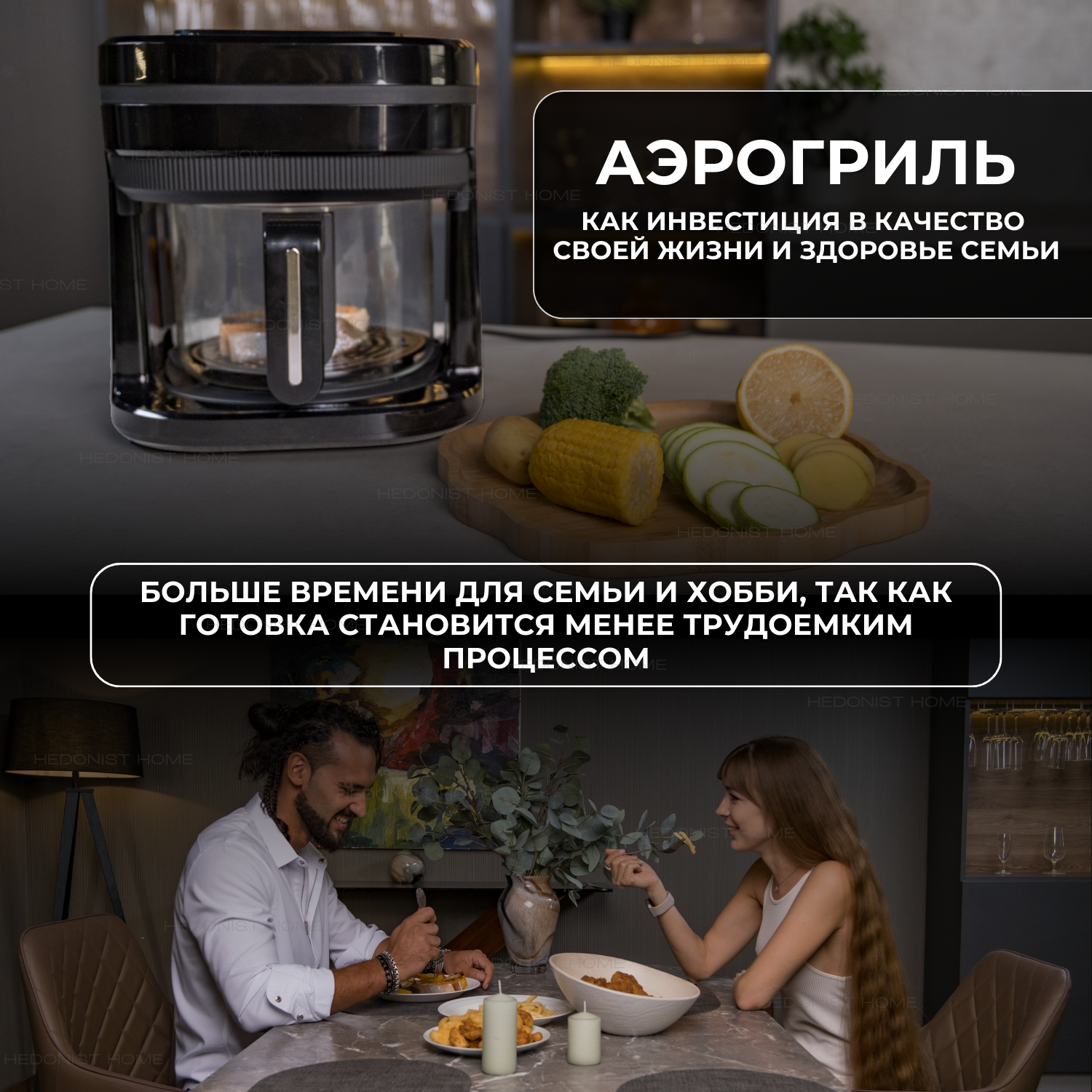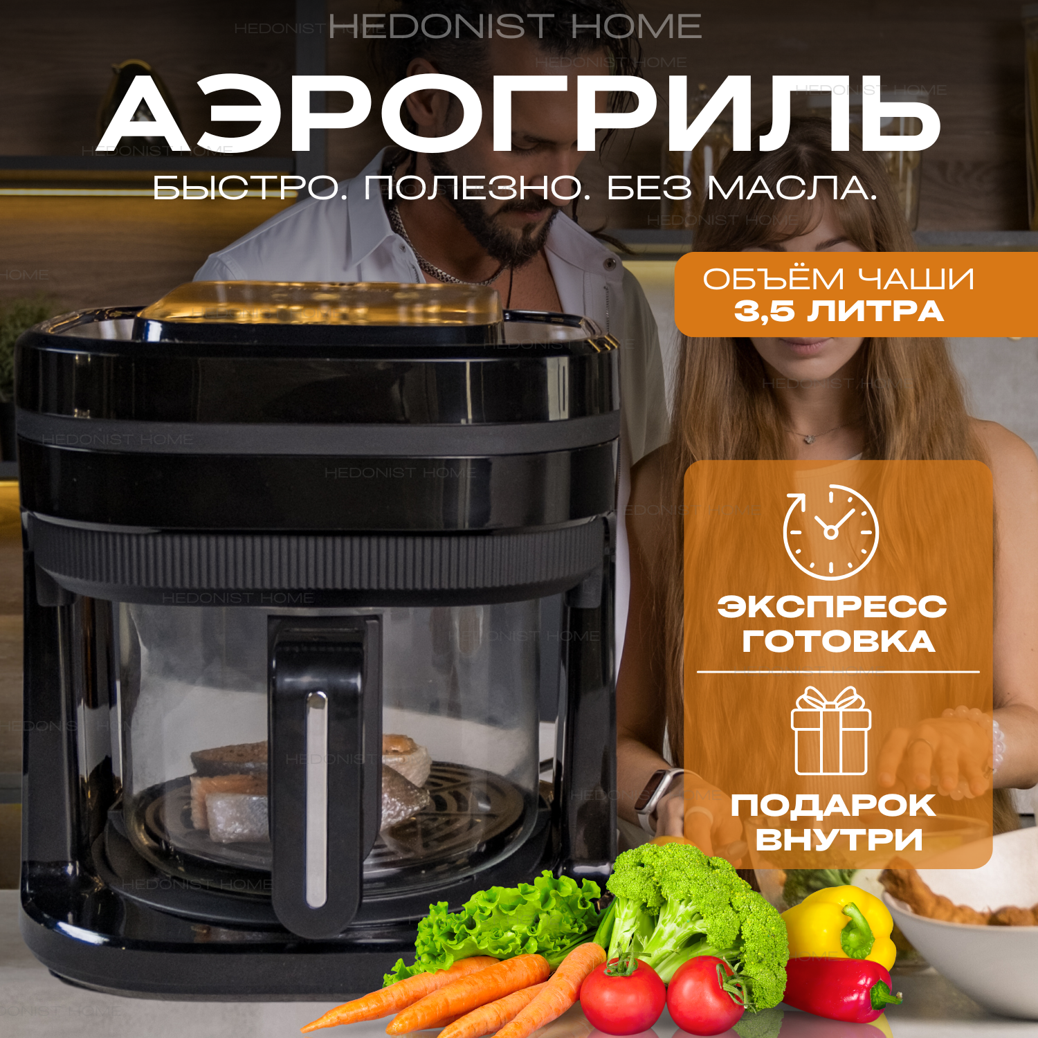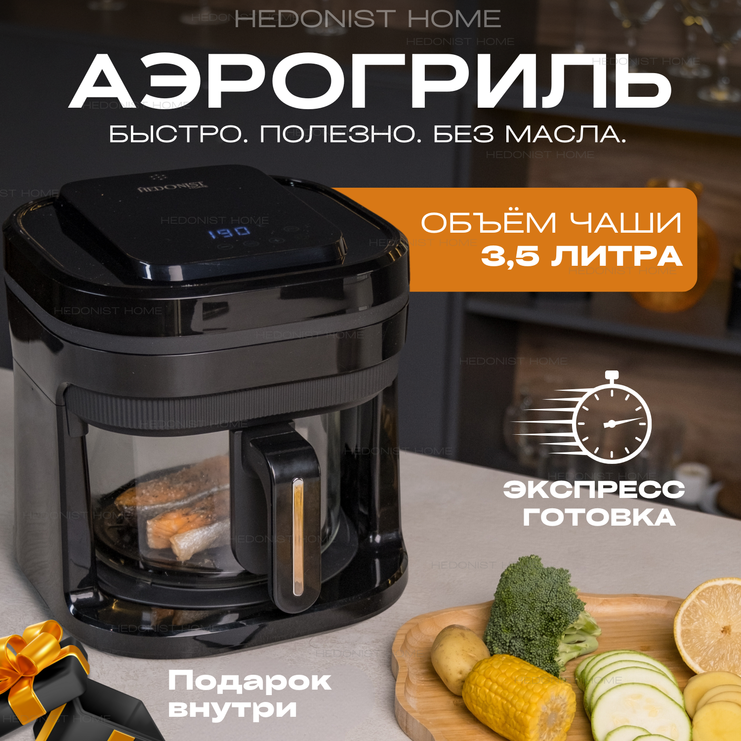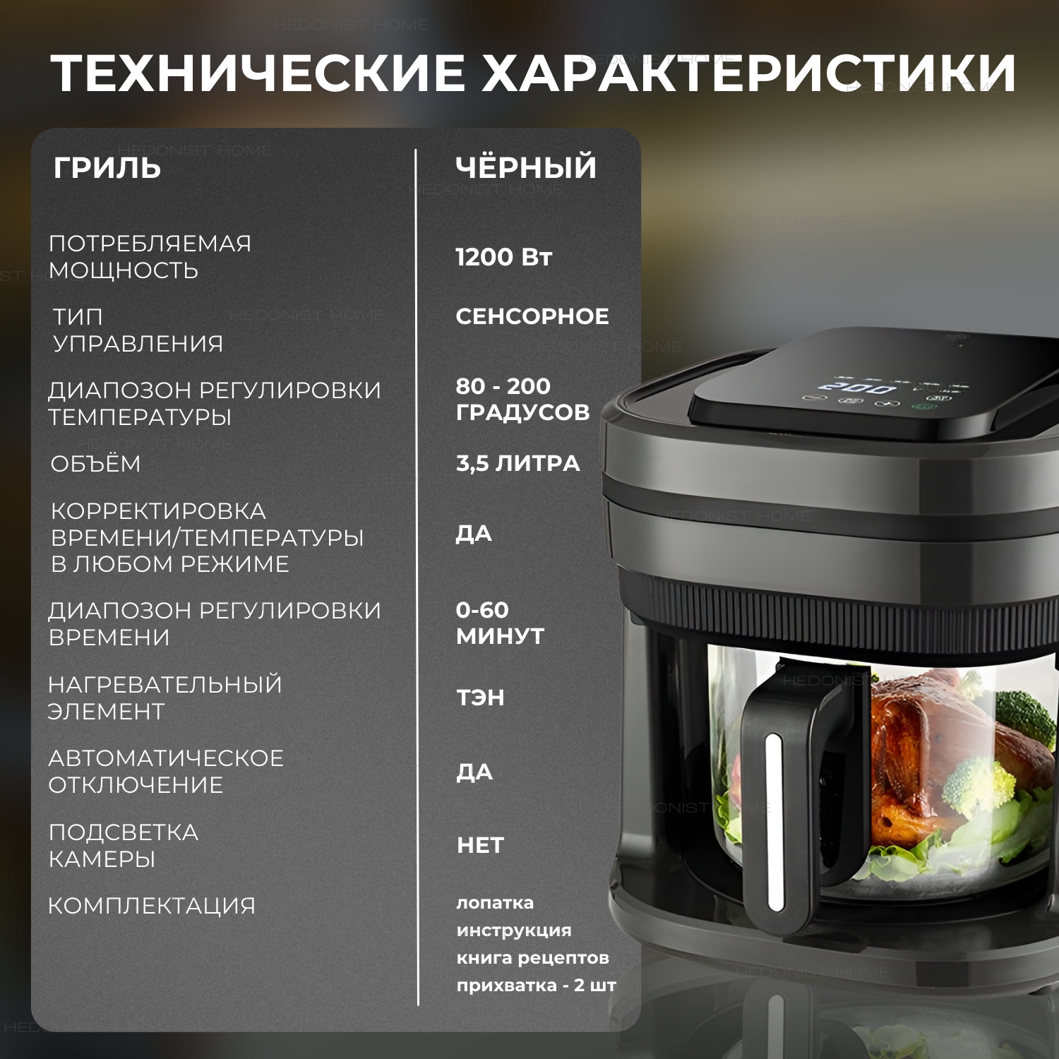 Аэрогриль электрический Hedonist home, 1200Вт, 3,5л интересное: