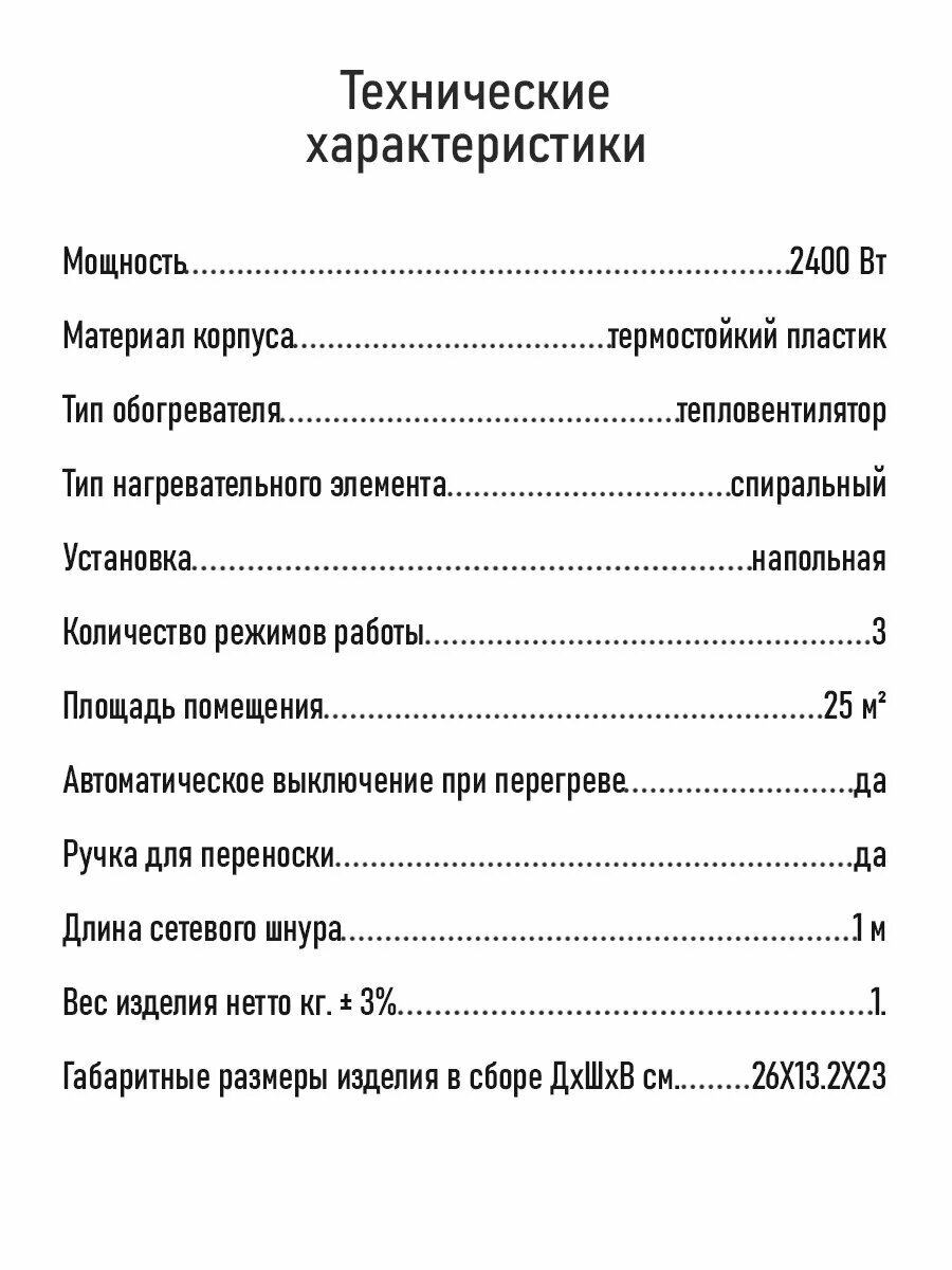 | Тип обогревателя | тепловентилятор |